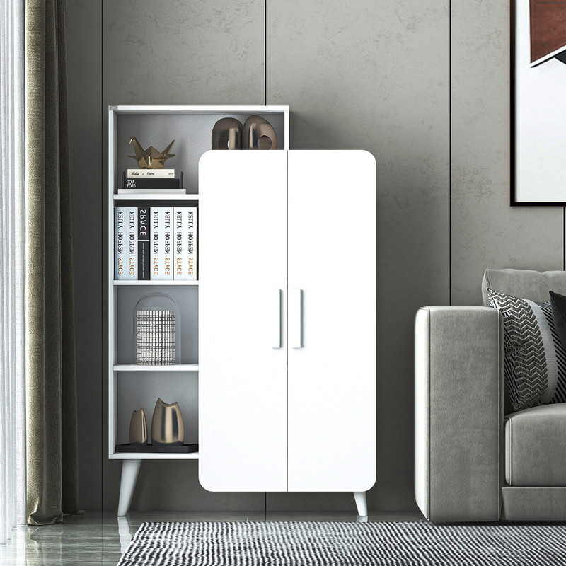 کتابخانه ایستاده ، جنس مغزی نئوپان با روکش ملامینه، دارای دو درب کمدی با لولای آرام بند و به شکل منحنی و پنج قفسه جهت قرار دادن کتاب و اکسسوری ، پایه های مخروطی که همراه با کار ارسال می گردد و بایستی نصب نمایید، این کالا در رنگ بندی : (سفید ، طوسی ، مشکی ، قهوه ای روشن ، قهوه ای (گردویی) ، قهوه ای تیره (ونگه) و حالت چند رنگ (قهوه ای سفید) تولید و عرضه می گردد، لطفا توجه فرمایید که همواره چند درجه اختلاف رنگ بین تصاویر بارگذاری شده و کالای ساخته شده وجود دارد. این کالا را فقط با برند و لوگوی تهیه کنید.