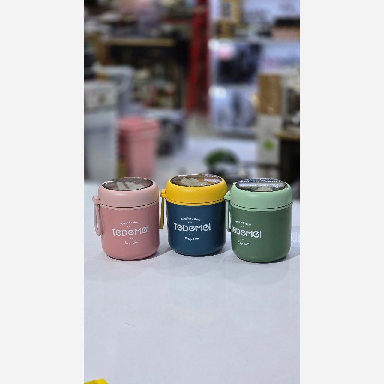 ظرف غذا سیلیکونی داخل استیل دارای محفظه قاشق و قاشق بند دار مناسب کودکان برای مدارس دارای سایز مناسب کیف کودکان