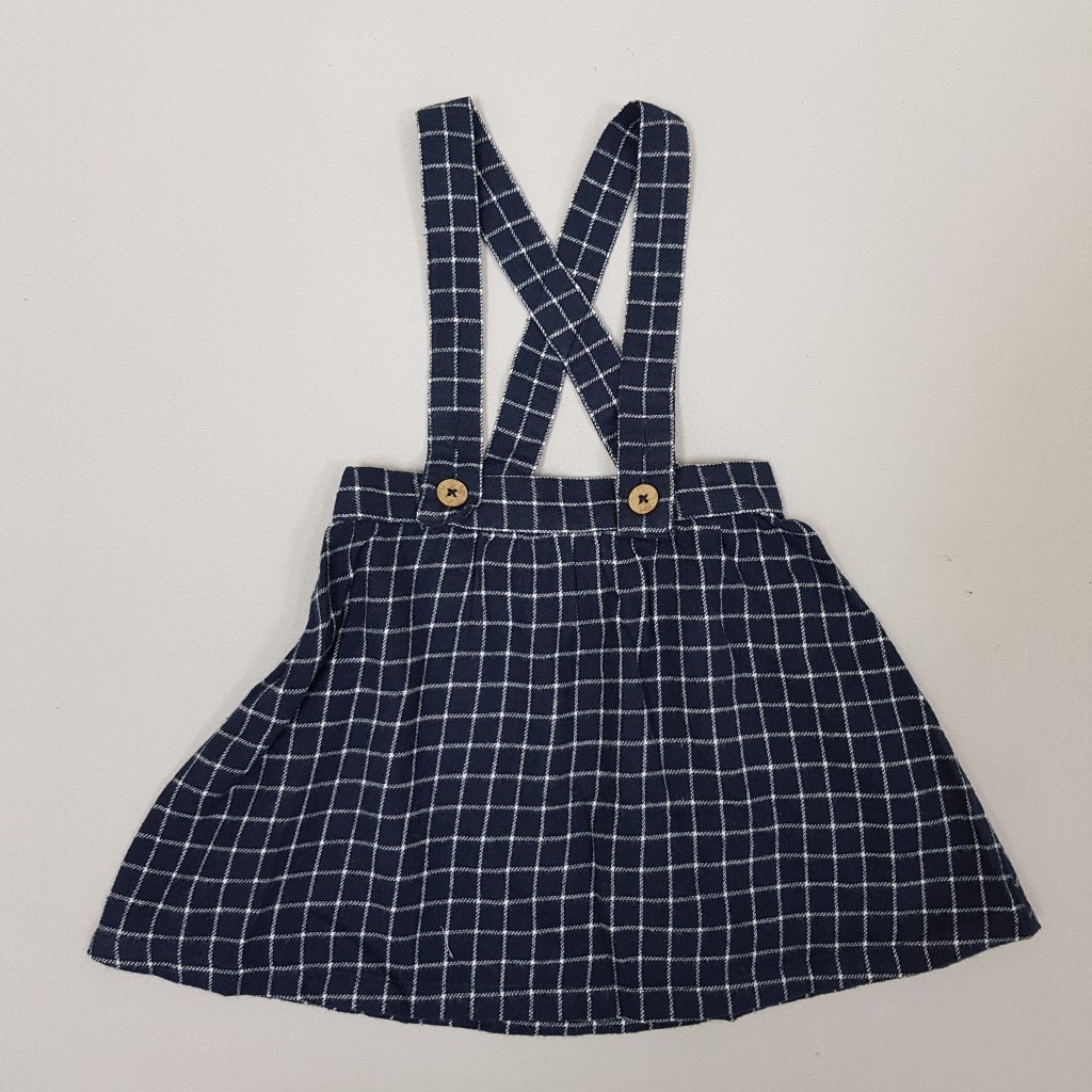 دامن پیشبندی یا 😍 اگه دنبال یه استایل راحت و در عین حال شیکی این دامن خوشگل حسابی به کارتون میاد و با یه شومیز یا بادی زیبا قابل ست شدنه🥰 👈🏻رنگ زمینه سرمه ای تیره و چهارخونه سفیده 👈🏻دکمه های طرح چوب داره☺️ 👈🏻مناسب فصول بهار و پاییز و زمستان 👈🏻پشت کار ضربدری و زیباس 👈🏻ساسبند قابل تنظیمه و دوتا جا دکمه داره 👈🏻پشت کمر دامن کشیه و خوب توی تن می ایسته 👈🏻این کار از برند جورجه که به خاطر نوع واردات کات لیبل شده و با قیمت خیلی مناسب تقدیمتون میشه🌹 ابعاد و سایز: 🌹1 تا 2 سال. قد از سرشانه تا انتهای دامن: 45 و 47 عرض کمر 23 تا 31 🌹2 تا 4 سال گاها 5 سال قد از سرشانه تا انتهای دامن: 54 و 52 عرض کمر 26 تا 33