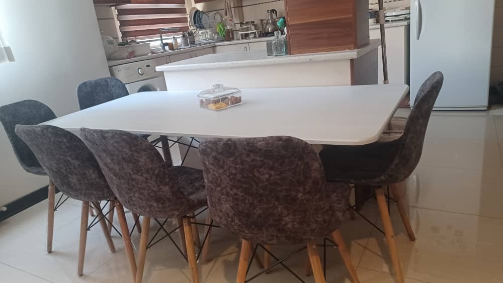 میز و صندلی ناهارخوری ۶ نفره اریا لمسه میز ۱۲۰ پایه ایفلی صفحه ام دی اف در طرح های مختلف صندلی پایه ایفلی روکش اسفنج و پارچه در رنگهای متنوع محصولی شیک و در عین حال مقاوم ارسال به سراسر کشور از طریق باربری