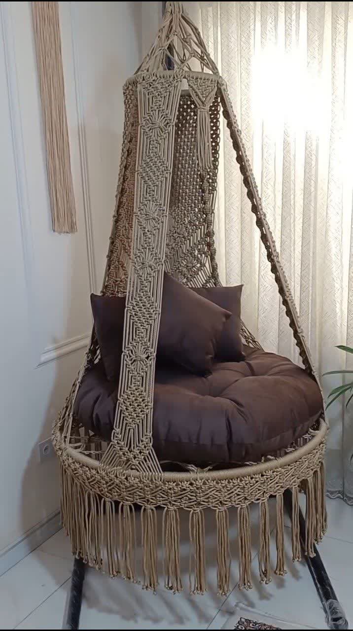 سلام مشتری عزیز تاب ریلکسی عربی مکرومه که مشاهده میفرمایید ، مکرومه آن از بهترین نخ والیاف بافته شده است. نخ پلی استر مغزدار شرکت جهان آسا که برخلاف برخی از کارهای بازاری مقاومت بالایی جهت تحمل وزن دارد و تا 180 کیلوگرم را تحمل میکند بدون اینکه به مرور زمان از شکل و ظاهر اولیه خود بیفتد. ارتفاع تاب حدود 220 سانتی متر و قطر کف تاب 100 سانتی متر است پارچهای که برای تشک انتخاب کردیم جز بهترین پارچه های مبلی است . کلاف تاب از آهن و رنگکاری آن کوره ای و استاتیک است رنگ نخ و تشک تاب به سلیقه شما بر اساس کالیته موجود در اکهی بافته می شود. قیمت تعیین شده در مقایسه با هزینه متریال و تولید با حداقل سود ممکن است به این امید که شما مشتریان عزیز بتوانید با خیالی راحت در منزل خود تاب زیبا مکرومه بافی ما را داشته باشید همچنین مشتریانی که خرید عمده دارند و مشتریان سراسر کشور خریدی به صرفه داشته باشند خدا را شاکر هستیم که بعد سالها فعالیت در تولید انواع تاب ریلکسی رضایت مشتریان را داریم و پیامهایشان موجب دلگرمی مان است بعد از خرید تضمین و پشتیبانی تیم تولید همراه شما است برای سفارش و مشاوره با پشتیبانی سایت تماس بگیرید