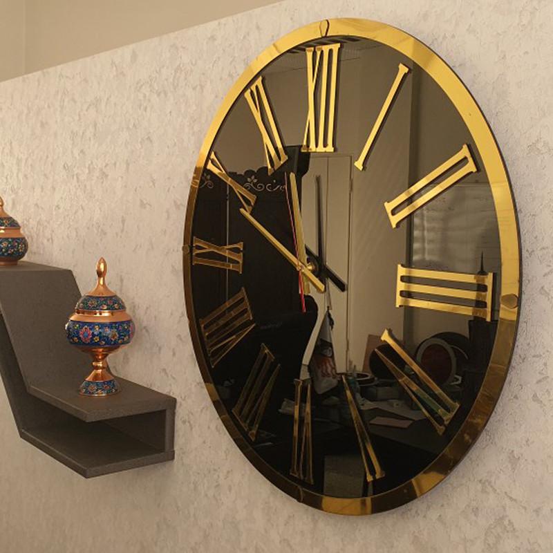 ساعت های دیواری آینه ای طراحی جدیدی از تلفیق آینه و ساعت است به گونه ای که بخش زیادی از صفحه را آینه دودی رنگ تشکیل داده و اعداد رومی بر روی آینه قرار گرفته است. این ساعت ها قابل استفاده در تمام فضاهای منازل، فروشگاه ها، سالن ها و.. است و بخصوص در فضاهایی که از نورهای تزئینی مانند نورپردازی در کناف سقف، هالوژنها و لوسترهایی با تعداد شعلههای نوری زیاد استفاده میکنند، انعکاس بیشتری ایجاد میکند و درخشش بسیار زیبایی در زمان روشنایی نورها به چشم میآید. ابعاد این ساعت ها 50x50 بوده و از ویژگیهای این ساعت دیواری، میتوان به استفاده از آینههای شفاف و مرغوب که انعکاس بالایی داشته و موتور این ساعت که از نوع آرام گرد اصل تایوانی است اشاره کرد. لازم به ذکر است این ساعت به راحتی بر روی دیوار قابل نصب بوده و قابل جابجاییست . مشخصات فنی محصول: ** مشخصات ** ابعاد: 500x500x30 میلیمتر وزن: 2.5 کیلوگرم قطر صفحه: 50 سانتیمتر جنس قاب: چوب نحوه نمایش: عقربهای منبع انرژی: باتری نوع باتری: قلمی AA نمایش زمان: رومی