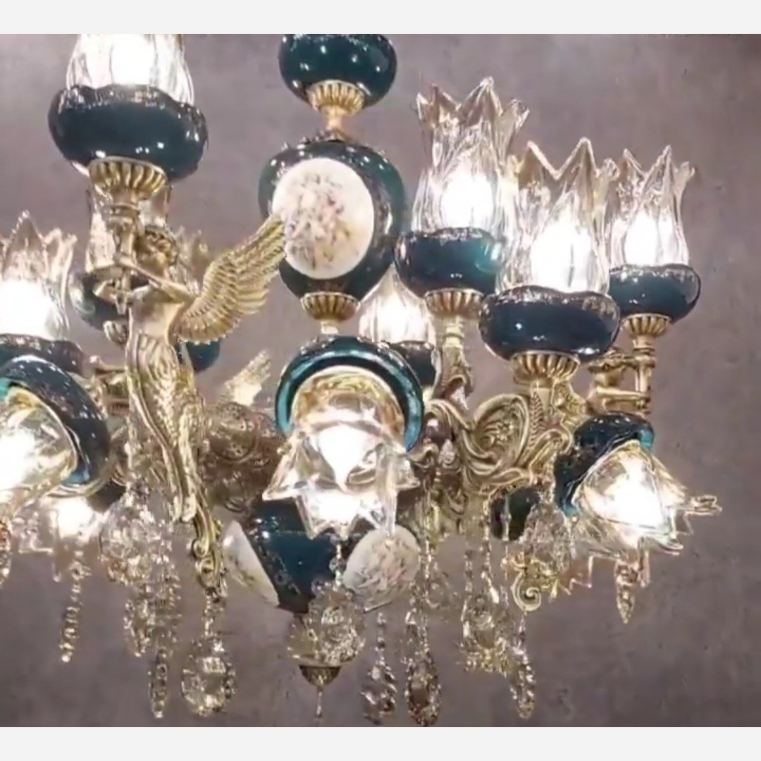 لوستر چینی برنز فرشته آرامیس 3 شاخه 9 شعله برنزی برنجی مبلمونسرا مدل 245089