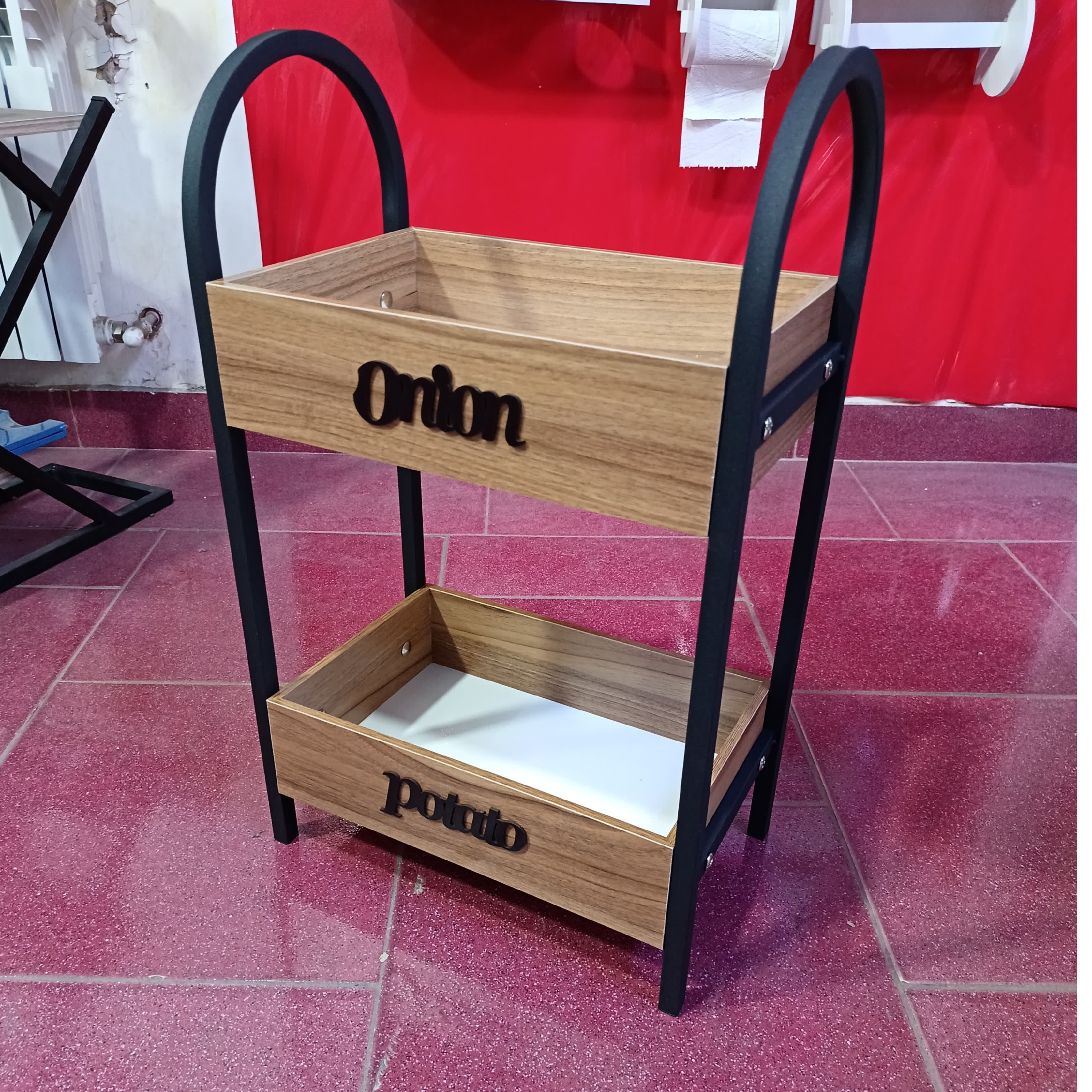 ساخته شده از ترکیب چوب و فلز مونتاژی و بسیار با دوام ابعاد کل 24*39*64 سانت ابعاد سبدها 9*22*34 سانت