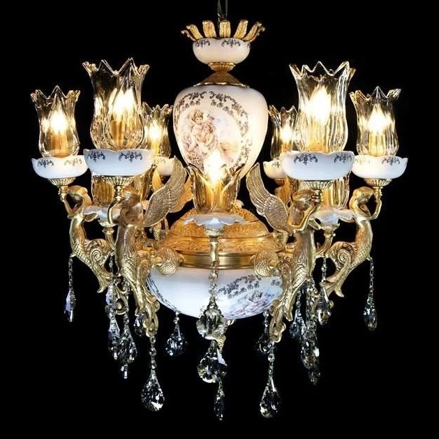 لوستر فرشته چینی برنز چوپوقی خور 6 شاخه 12 شعله مبلمونسرا مدل 245104