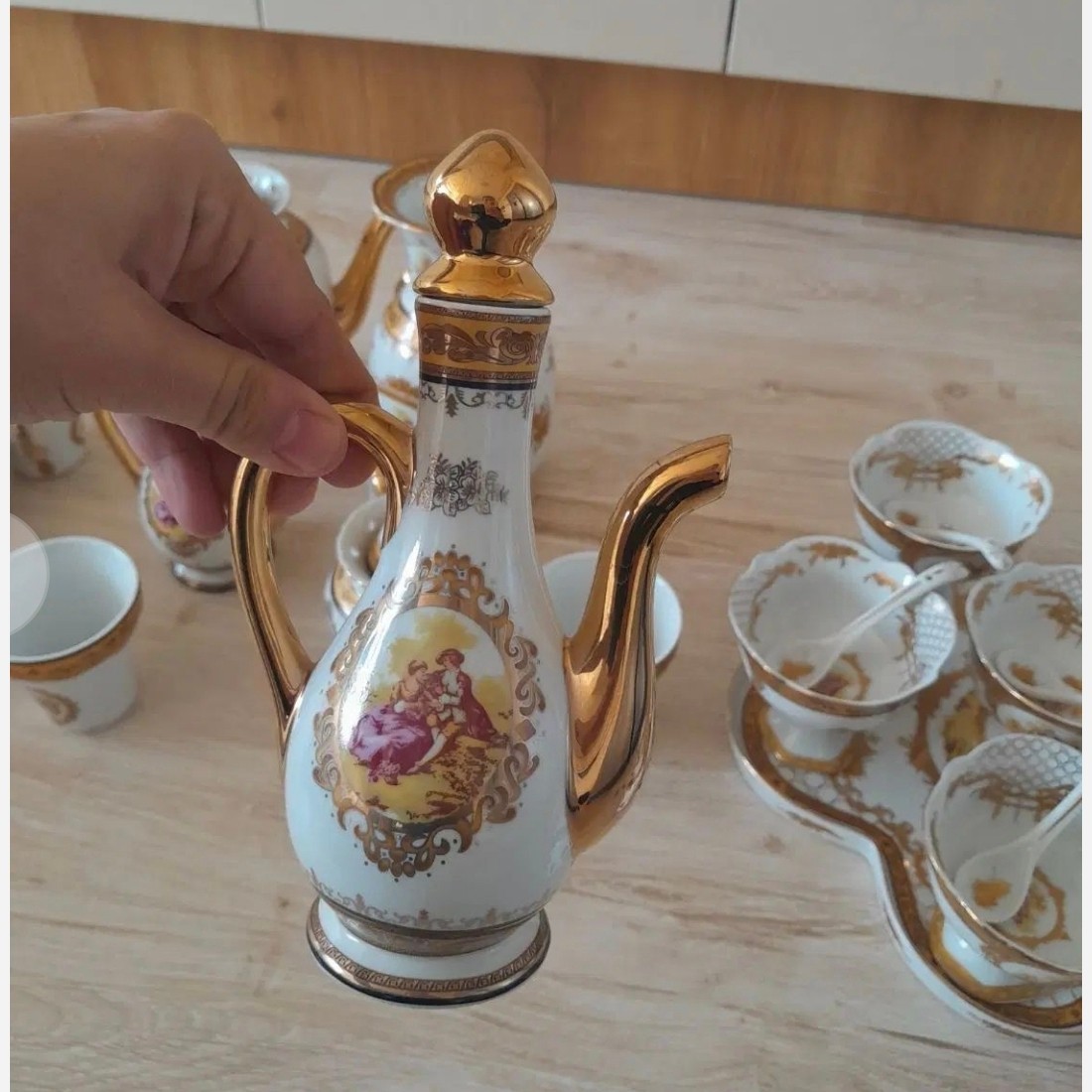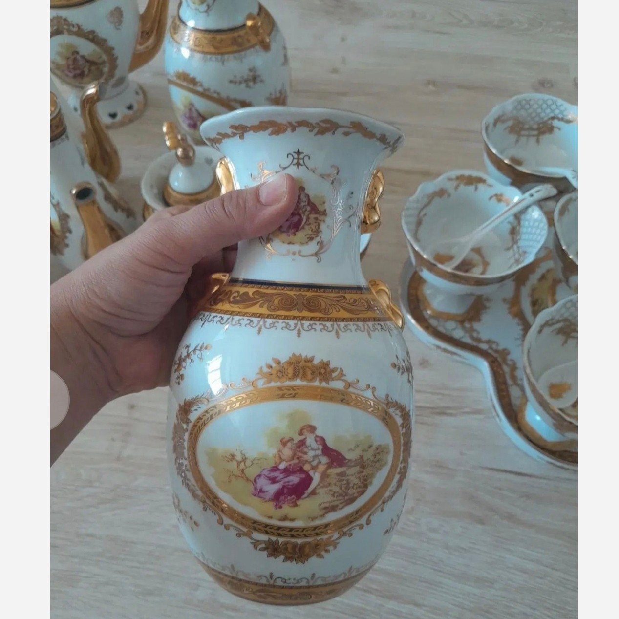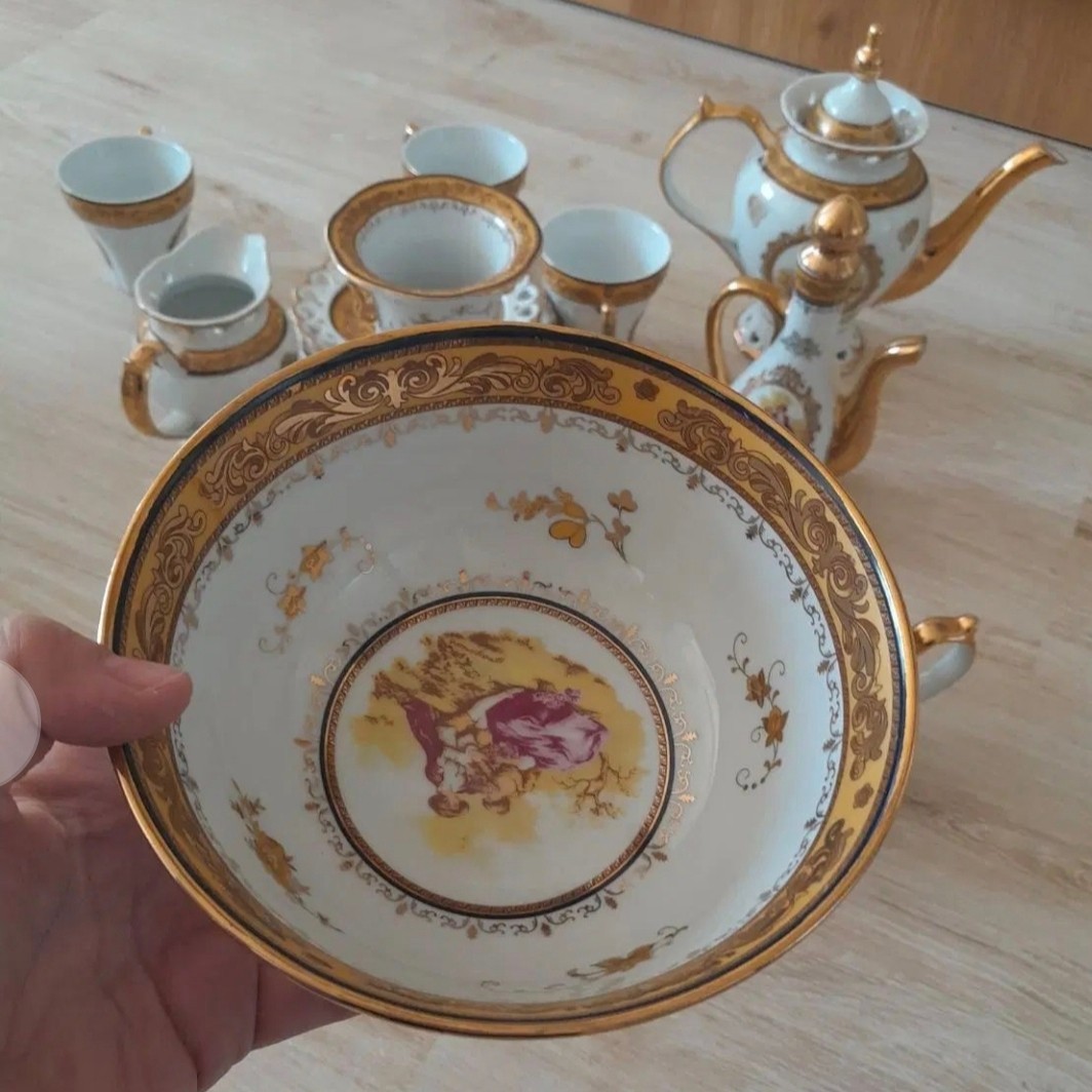 سرویس چینی 45 پارچه لردشید اصل بسیار زیر قیمت بسیار زیباتر از تصویر کاملا مطابق تصویر 6 عدد کاسه 6 عدد فنجان 6 عدد نعلبکی 1عدد قوری و دربش 1 عدد قندان و دربش 1 عدد شکرریز 6 عدد بستنی خوری 6 عدد قاشق 1 عدد سینی 2 عدد گلابدان با دربهایشان 2 عدد گلدان 2 عدد نمکدان 1 عدد استند مجموعا 45 پارچه با ارسال رایگان