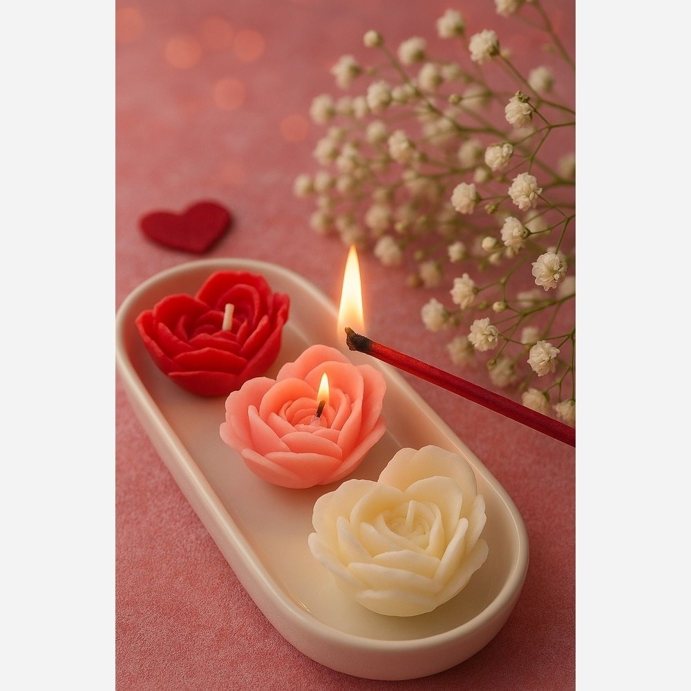شمع گل رز قلبی وارمری