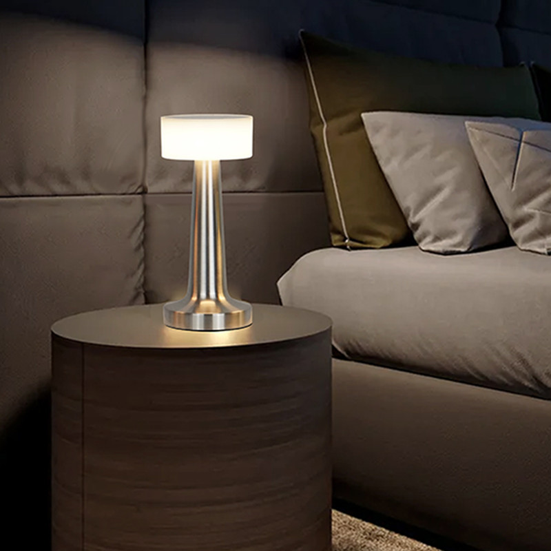 آباژور شارژی رومیزی مدل VG-MYT001 مقاومت در برابر رطوبت و غبار با IP55 این امکان را فراهم میآورد تا از این چراغ دکوراتیو علاوه بر نورپردازی فضای داخلی، در نورپردازی فضای بیرونی مانند تراس و یا روی میز رستوران هایی که فضای باز دارند قابل استفاده باشد. این چراغ شارژی توسط شارژر پورت تایپ سی قابل شارژ میباشد. شما می توانید با 5 تا 8 ساعت شارژ دستگاه ، به مدت حداقل 8 ساعت از نور دلنشین آن در فضاهای دلخواه خود بهره مند شوید. این محصول دارای قسمت لمسی در بالای آن است و شما تنها با لمس آن قادر به تغییر حالت نور به 3 مدل مختلف هستید.بدنه مقاوم و بسیار با کیفیت چراغ شارژی و سهولت در جابجایی را نیز می توان از دیگر نقاط قوت این محصول دانست. مشخصات فنی محصول: ** مشخصات ** ابعاد: 9x9x21 سانتیمتر وزن: 300 گرم نوع لامپ: LED منبع انرژی: باتری ابعاد بستهبندی: 23x10x10 سانتیمتر وزن بستهبندی: 335 گرم سایر توضیحات: حتما بعد از خرید آباژور را چند ساعت داخل شارژ قرار دهید تا کامل شارژ شود و بعد آن را روشن کنید سپس با فشردن دکمه ای که در زیر دستگاه قرار دارد دستگاه را روشن کنید و با ضربه به کلاهک آباژور از زیبایی های آن لذت ببرید وزن سبک و جابجایی آسان این محصول را بیش از بیش کاربردی و زیبا میکند جنس بدنه: آلومینیوم