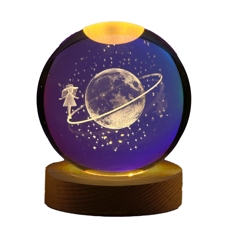 این چراغ خواب کریستالی به صورت سه بعدی و در ماه و دختر تولید شده که باعث جذابیت بیشتر اتاق خواب شما می شود. جنس این گوی شیشه ای از کریستال فشرده می باشد و همچنین دارای یک پایه چوبی و کابل برق USB می باشد که امکان اتصال به لپ تاپ، کامپیوتر، پاور بانک و شارژ گوشی را فراهم میسازد. این محصول دکوری منحصر به فرد و شیک و همچنین یک هدیه جذاب و ماندگار برای هر شخصی می تواند باشد. مشخصات فنی محصول: ** مشخصات ** ابعاد: 8x8x10 سانتیمتر وزن: 800 گرم نوع لامپ: LED نوع سرپیچ: سیمی منبع انرژی: USB طول سیم: 1 سانتیمتر ابعاد بستهبندی: 9.5x9.5x12.5 سانتیمتر وزن بستهبندی: 800 گرم سایر توضیحات: جنس کریستال طراحی سه بعدی زیبا دارای کابل USB جنس بدنه: کریستال