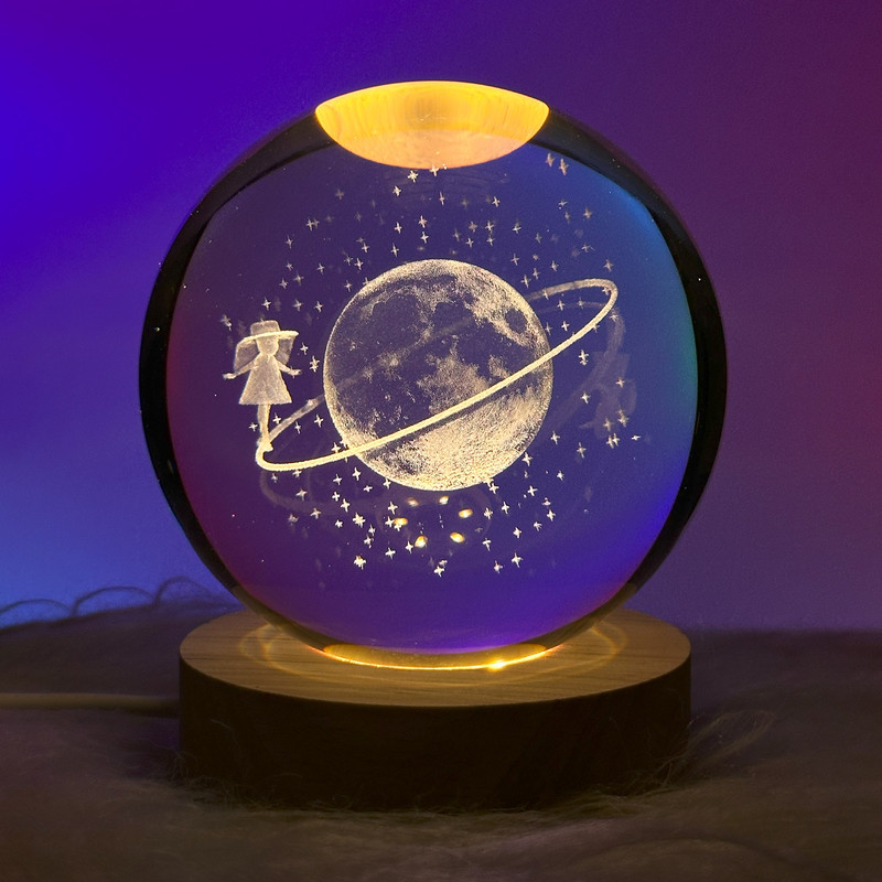 چراغ خواب مدل گوی کریستال سه بعدی طرح ماه و دختر مبلمونسرا مدل 233299