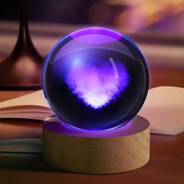چراغ خواب مدل گوی شیشه ای 3D طرح قلب مبلمونسرا مدل 234144