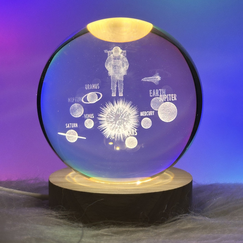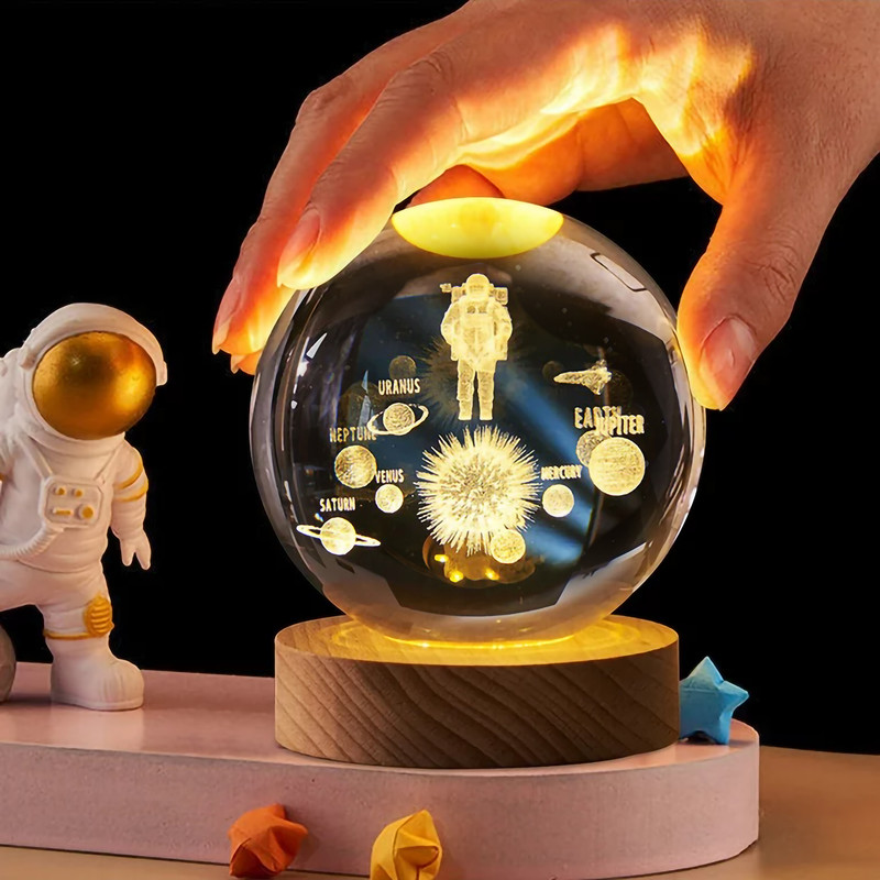 چراغ خواب مدل گوی شیشه ای 3D طرح فضانورد مبلمونسرا مدل 231666