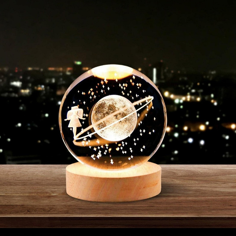 یکی از جذاب ترین هدیه هایی که می توانید به کسی که دوستش دارید هدیه بدهید چراغ خواب گوی دختر و ماه می باشد این هدیه مناسب تمامی کادو های شما عزیزان می باشد مشخصات فنی محصول: ** مشخصات ** ابعاد: 8x6x6 سانتیمتر وزن: 300 گرم جنس شید : شیشه نوع لامپ: LED نوع سرپیچ: سیمی منبع انرژی: USB وزن بستهبندی: 350 گرم جنس بدنه: کریستال