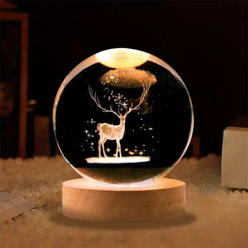 چراغ خواب مدل گوی شیشه ای 3D طرح گوزن کد M20 مبلمونسرا مدل 233292