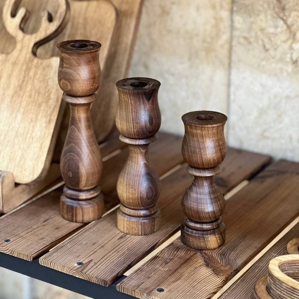 جاشمعی چوبی سه عددی چوب گردو در سه سایز رنگ تیره کیفیت عالی😍