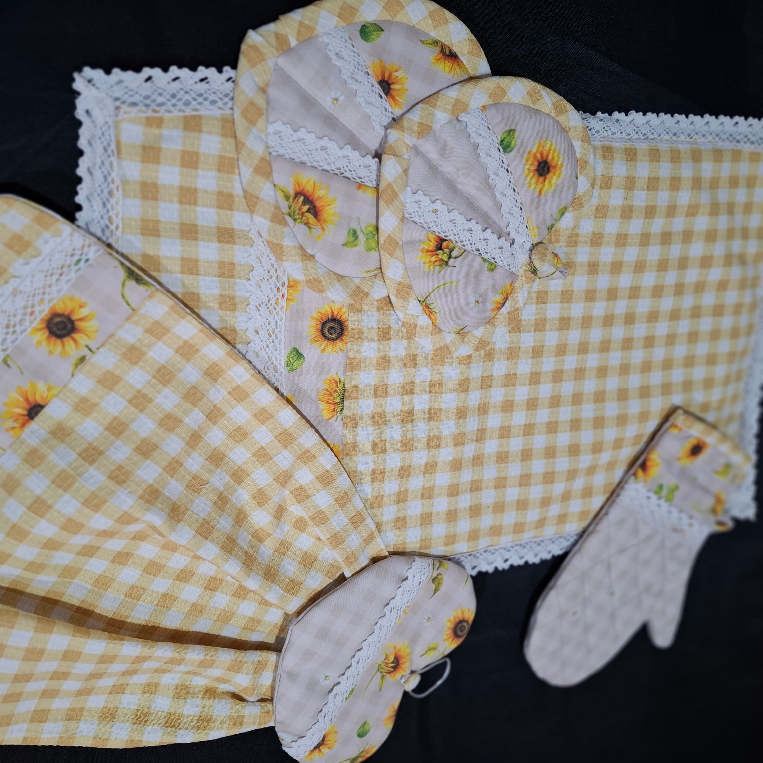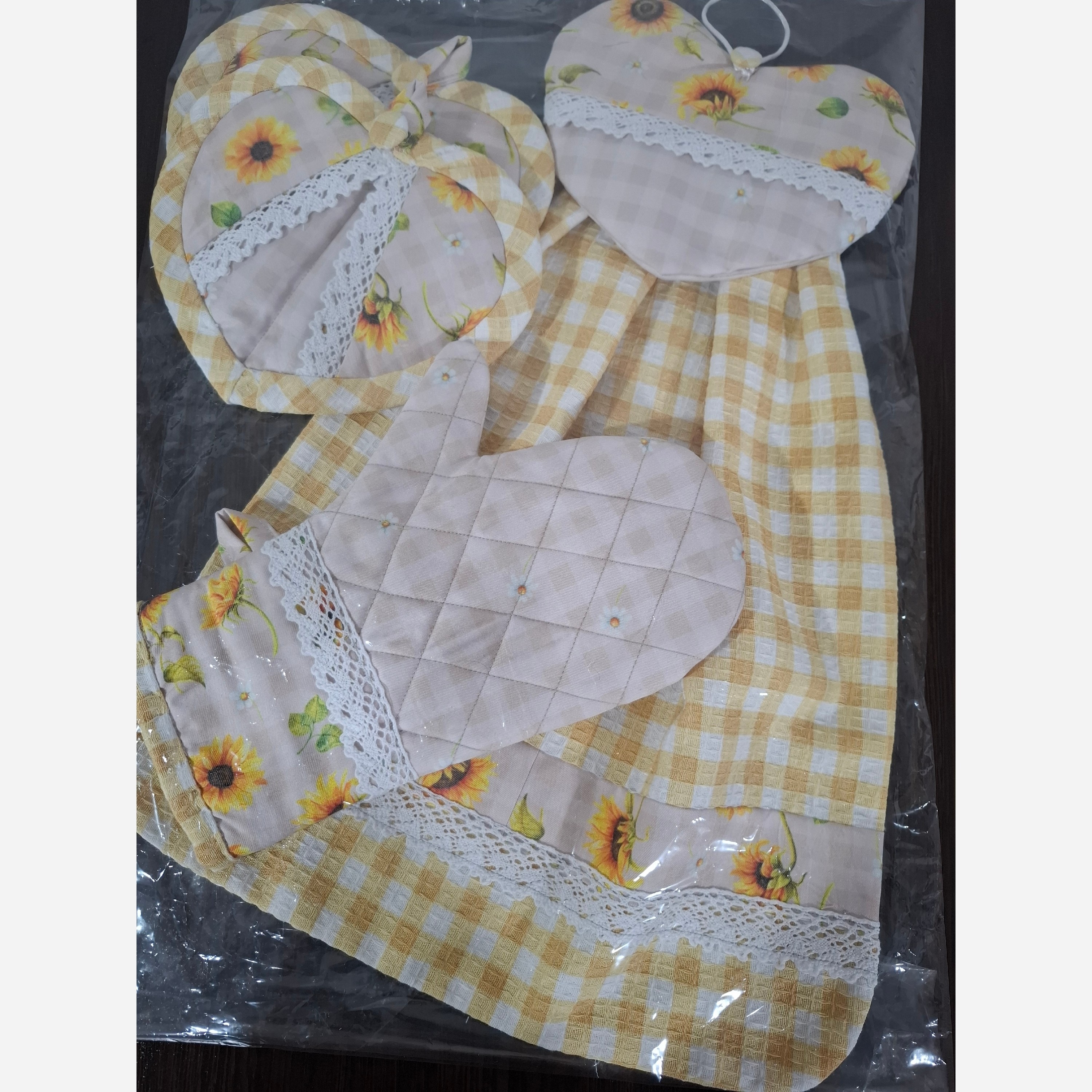 نیم ست اقتصادی و پرکاربرد شامل 5 تکه کاربردی نمگیر بزرگ دستکش فر حوله آویز قلبی دستگیره قلبی جیب دار یک جفت همگی تهیه شده با بهترین متریال