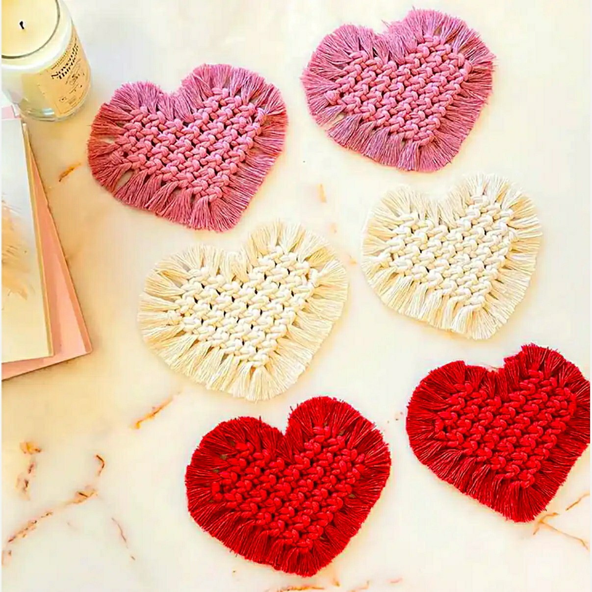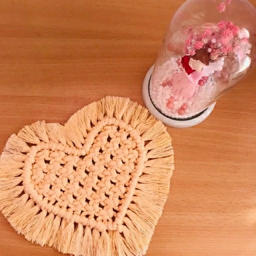 زیر لیوانی مکرومه بافی شده 🤩 طرح قلب قابل سفارش در رنگ های مختلف