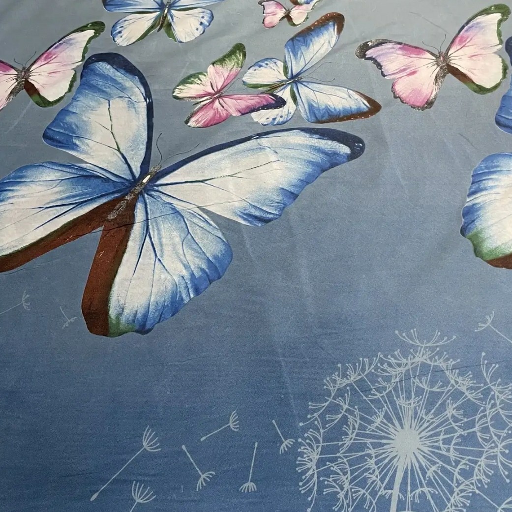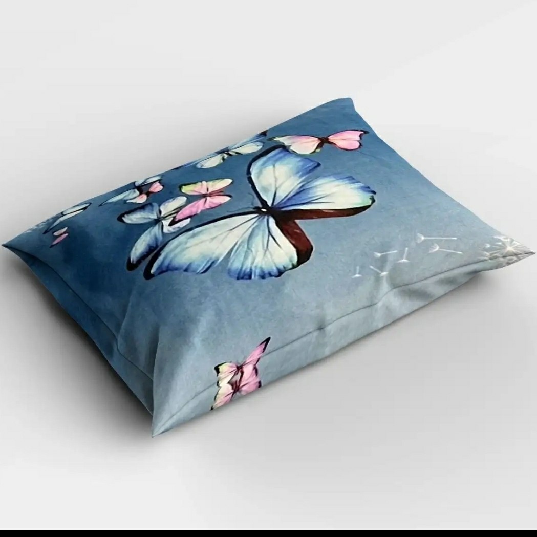 سرویس رو تختی طرح پروانه شامل یک عدد لحاف یک عدد روتختی یک عدد رو بالشی یک عدد کاور کوسن رو بالشی برای زیبایی بیشتر لبه دوزی شده همچنین رو بالشی دو طرفه قابل استفاده ست