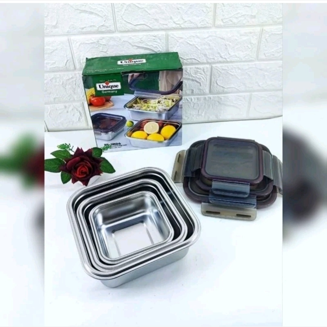 ظرف غذا استیل 3 تیکه یونیک کرکماز 6 پارچه درب دار مستطیل و مربع مبلمونسرا مدل 290308