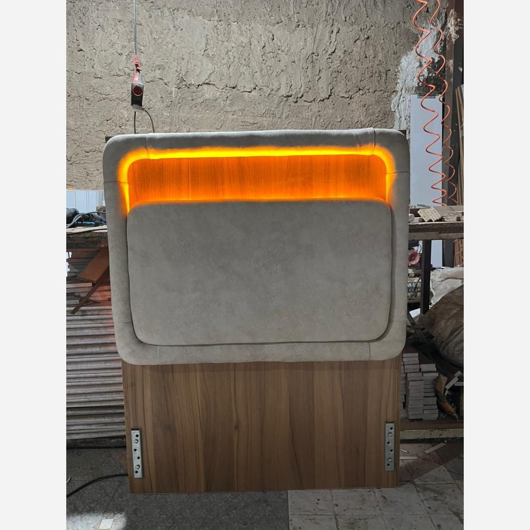 تخت خواب مدل الیزابت ،جنس ملامینه درجه یک سرتخت ترکیب چوب و پارچه ال ای دی خور در ابعاد 90×2 ارتفاع سرتخت 120 ارتفاع قید ها 30سانت