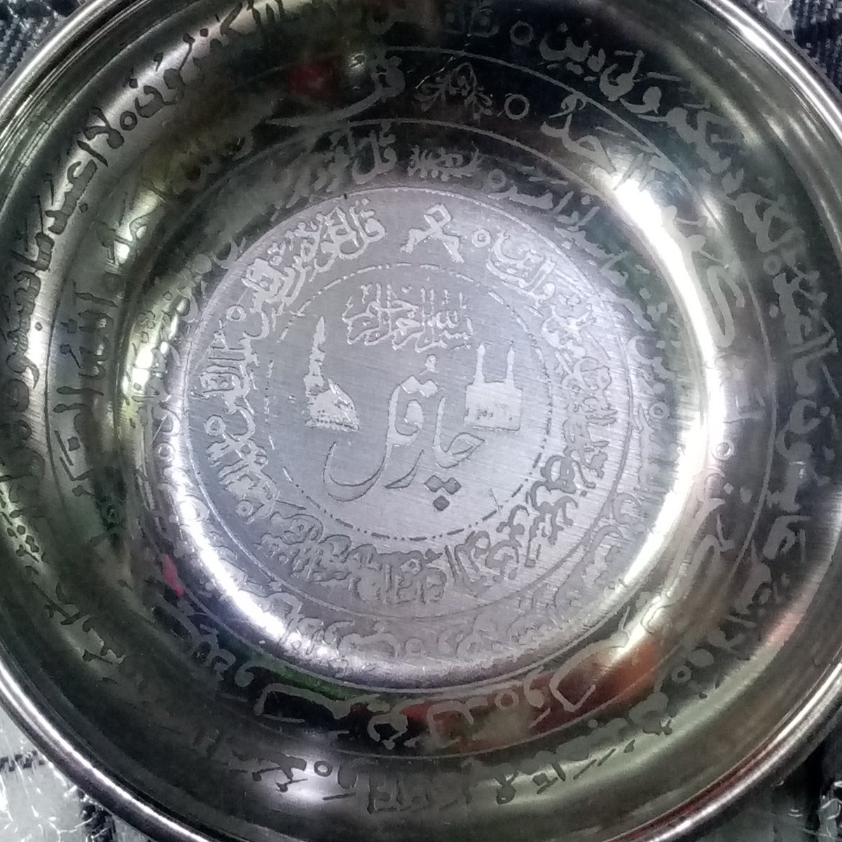 کاسه شفا با جنس استیل سازی نوشته کامل چهر سوره قرآن کریم معروف به 4 قل با قیمتی بسیار مناسب