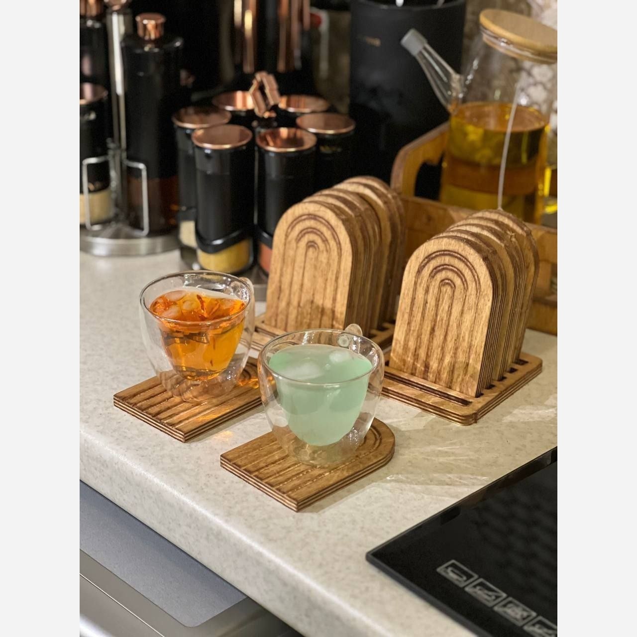 زیرلیوانی استند دار در طرح های مختلف مربع و گرد شاخ گوزنی، قلبی و ابروباد قابل شستشو ضد آب 6 عدد زیرلیوانی همراه با استند برای سفارش عمده پیام بدهید