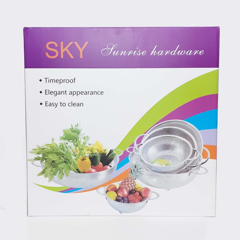 سبد های آبکش یکی از پر کاربردترین ظروف آشپزخانه هستند که تقریبا برای هر نوع پخت و پز و یا حتی برای شستن میوه و سبزیجات مورد نیاز می باشد، بنابراین کیفیت و عمر طولانی این سبد ها بسیار اهمیت دارد. در این میان آبکش های استیل نسبت به نوع پلاستیک آن بهترین گزینه میباشد. آبکش sky یک سرویس ۱۰پارچه در سایزهای ۴۰،۳۷.۵،۳۴.۵،۳۱.۵،۲۸.۵،۲۵.۵،۲۲.۵،۱۹.۵،۱۶.۵،۱۳.۵ سانتی متری ارائه کرده است که درون هم جای گرفته و در زمان عدم استفاده فضای کمی را اشغال می نماید. دسته ها و پایه سبد نیز از جنس استیل بوده و به دلیل تنوع سایز برای انواع امور آشپزخانه مناسب می باشد.