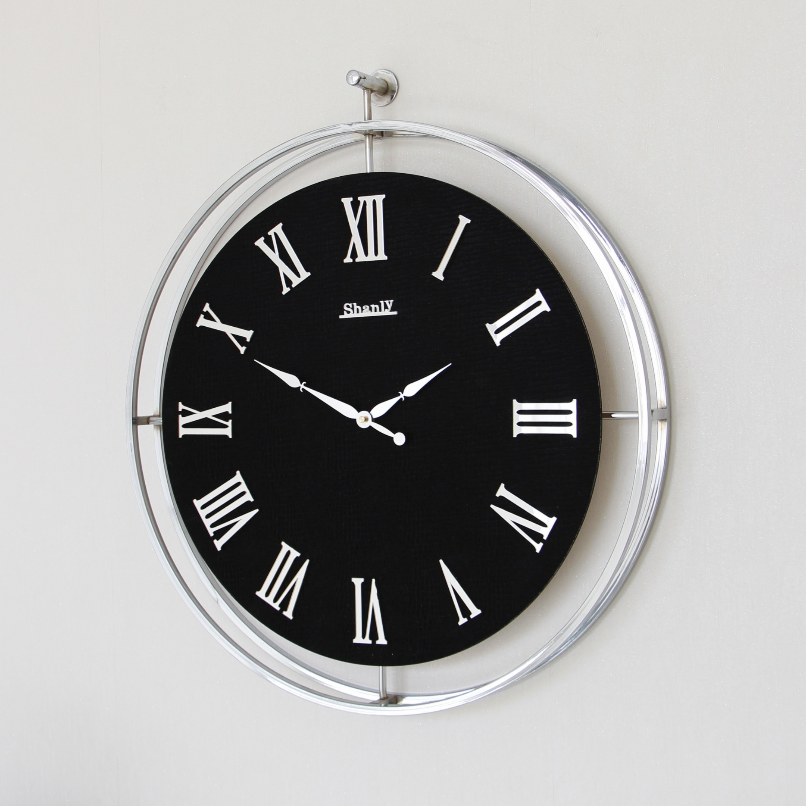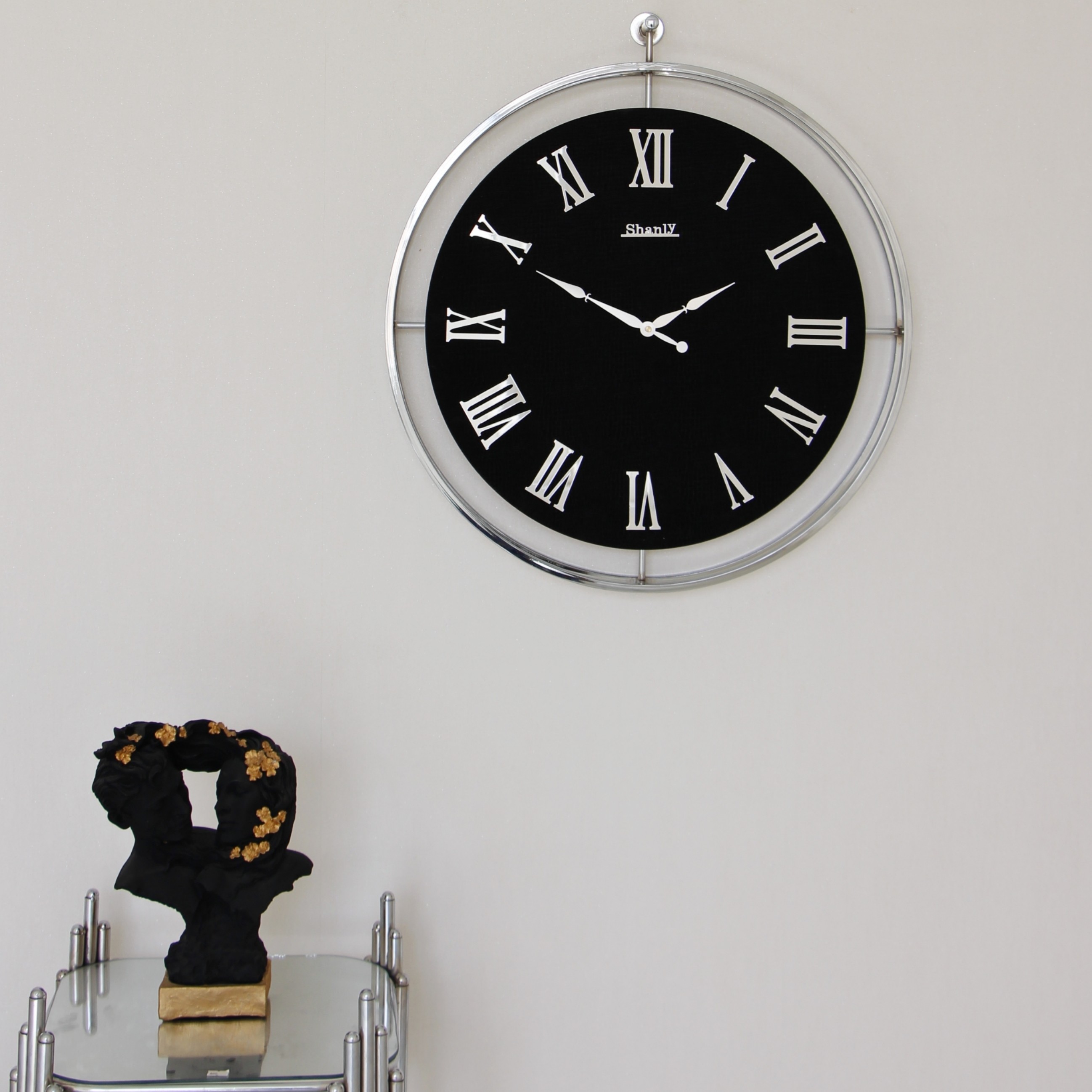 ساعت دیواری فلزی چرمی مدرن نقره ای مشکی آبکاری مبلمونسرا مدل 238240