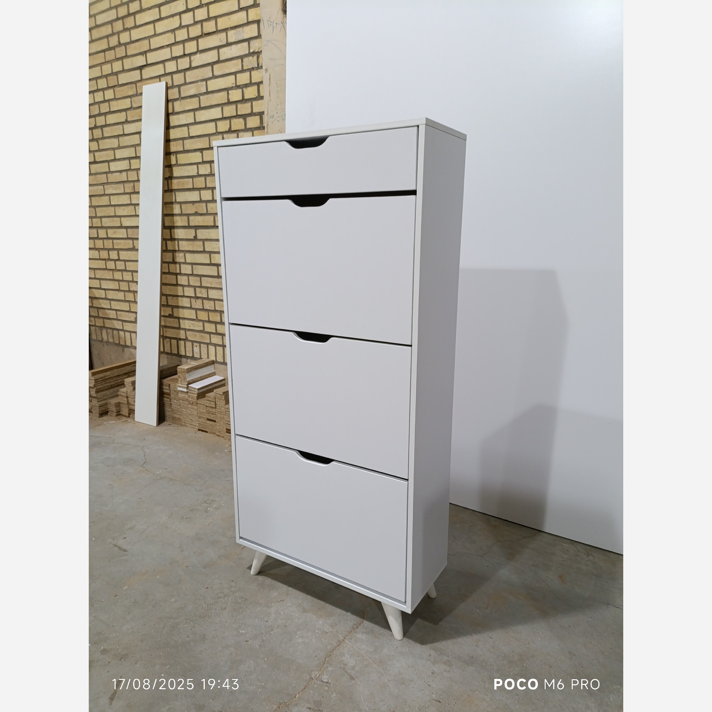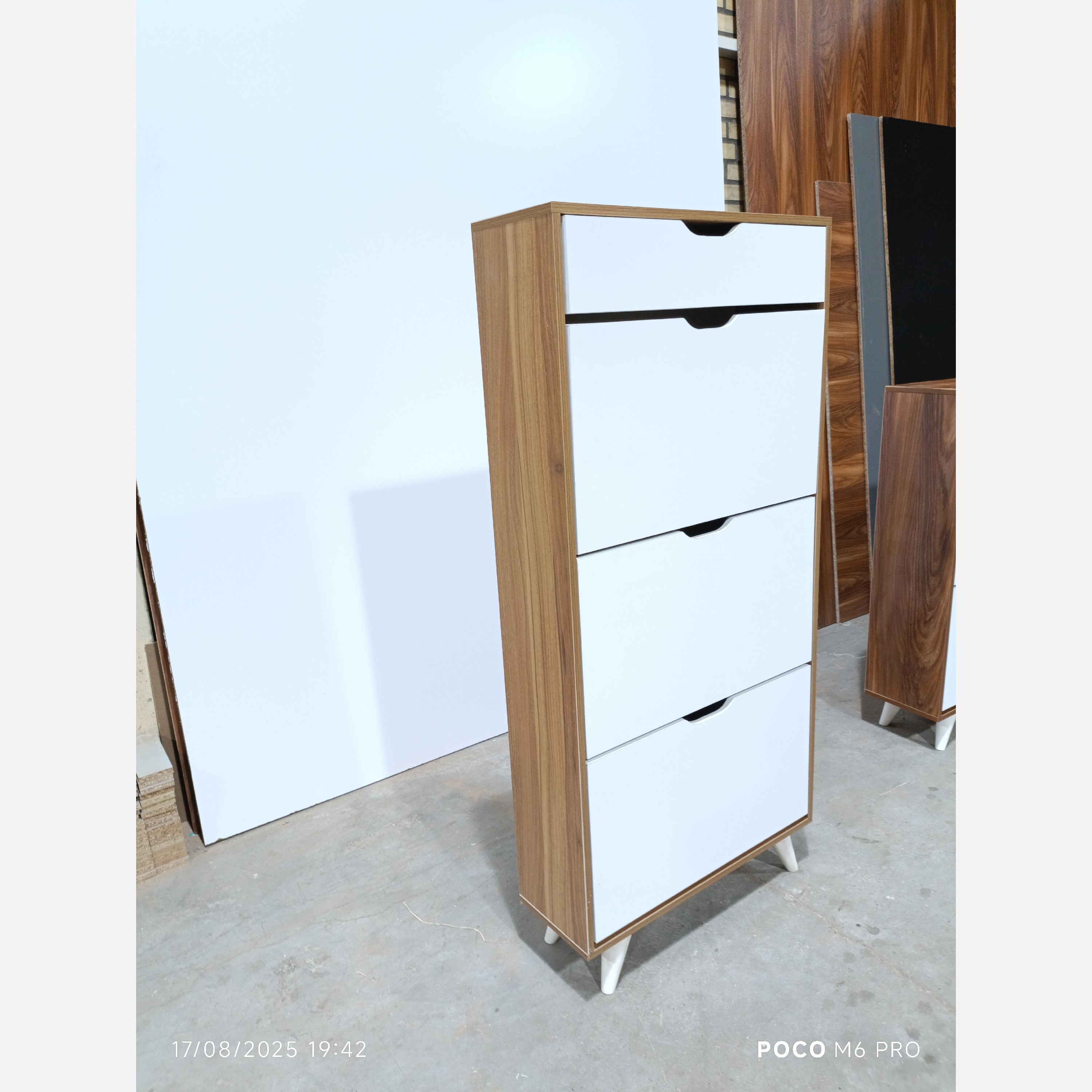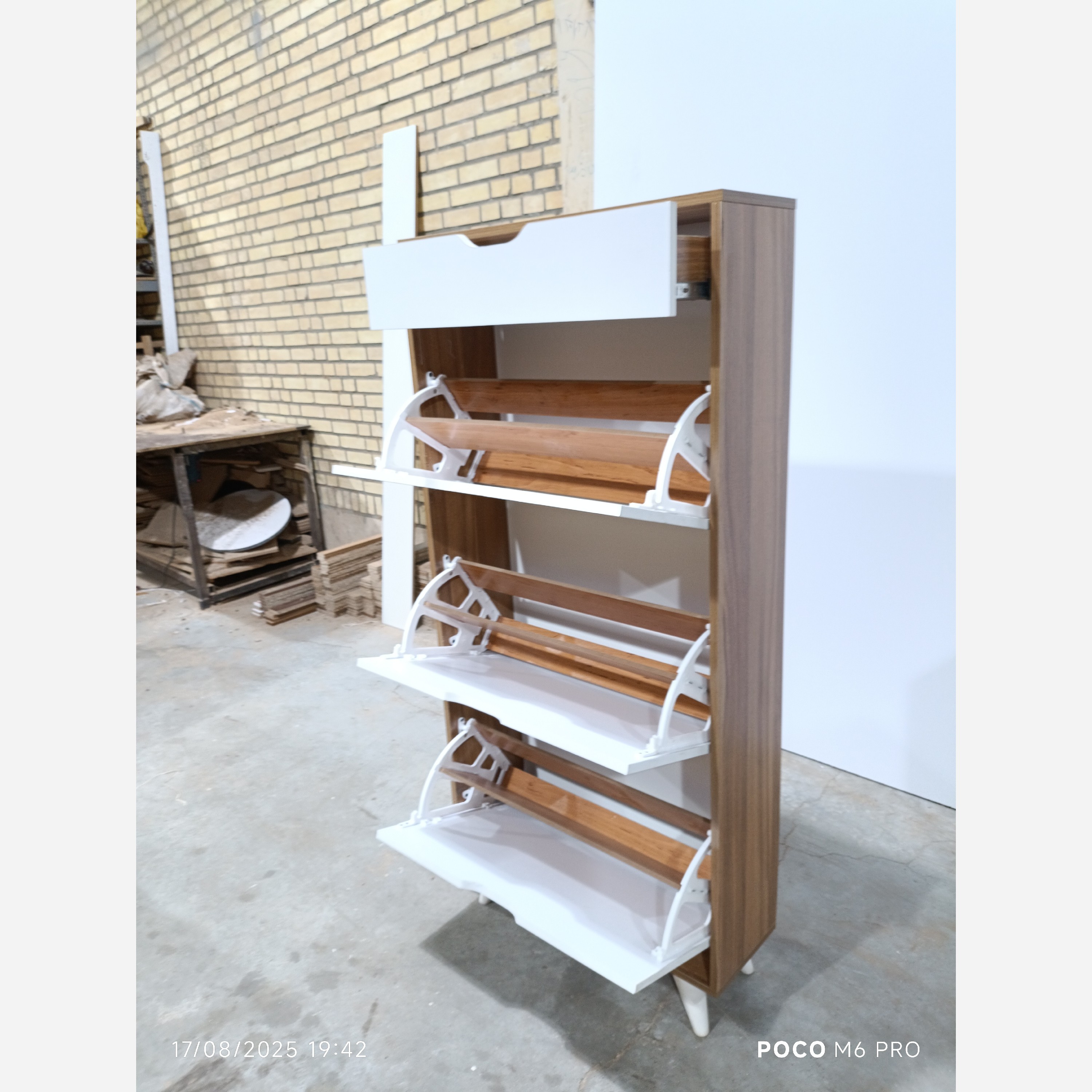 هزینه ارسال تا باربری رایگان میباشد جاکفشی داشبوردی کمجا مناسب برای منازل و ویلا و محل کارو... کشو محل گذاشتن واکس و کلید و... در ابعاد و اندازه های مختلف قابل اجرا هستش هردرب 6جفت کفش جا میگیره امکان خرید حضوری هم داریم جنس بدنه ملامینه پویا ضد خش قابل سفارش در دو نوع mdfو ملامینه ضد خش یراق مصرفی منسای ترکیه جنس پایه هاpvc قیمت پشت کار ورق ام دی اف3میلی متری لبه های کار توسط دستگاه لبه چسبان نوار pvc میشود ارسال به سراسر کشور توسط بار بری مدنظر شما هماهنگی لازم قبل از ارسال محصول از طریق تماس تلفنی با شما انجام خواهد شد برای مشتریان عزیز سایر استانها نیز بعد از تحویل بار بری حواله محصول ارسال خواهد شد رنگ بندی به سلیقه مشتری جاکفشی رنگ های ترکیبی هم موجود مثلاً درب یک رنگ بدنه رنگ دیگر