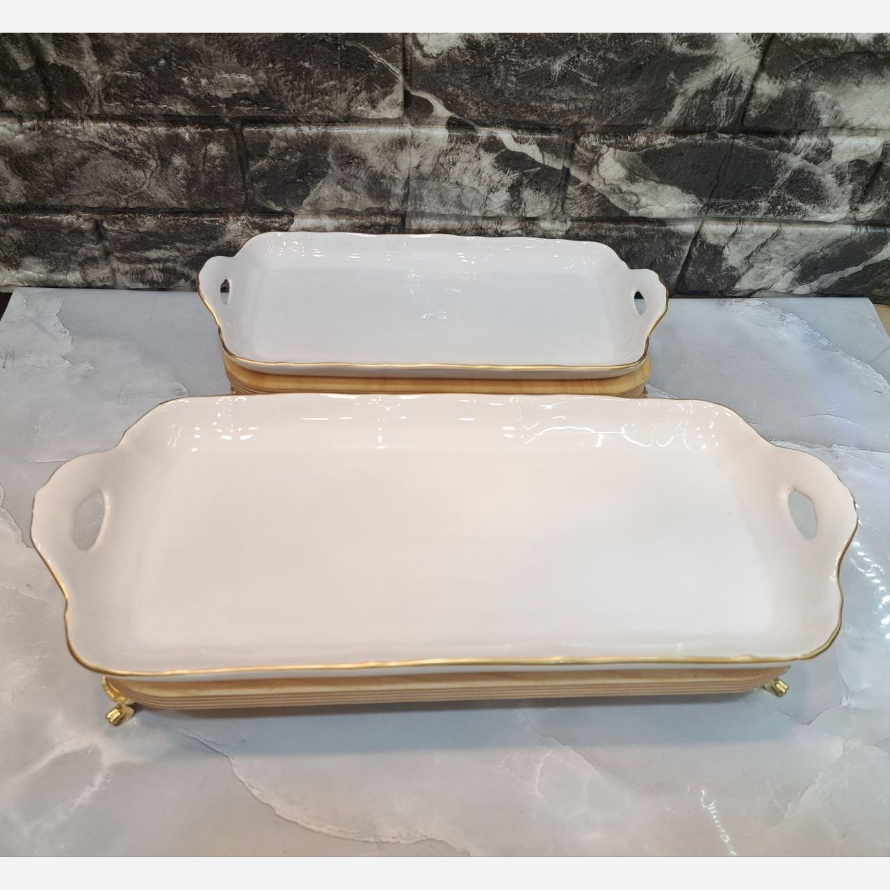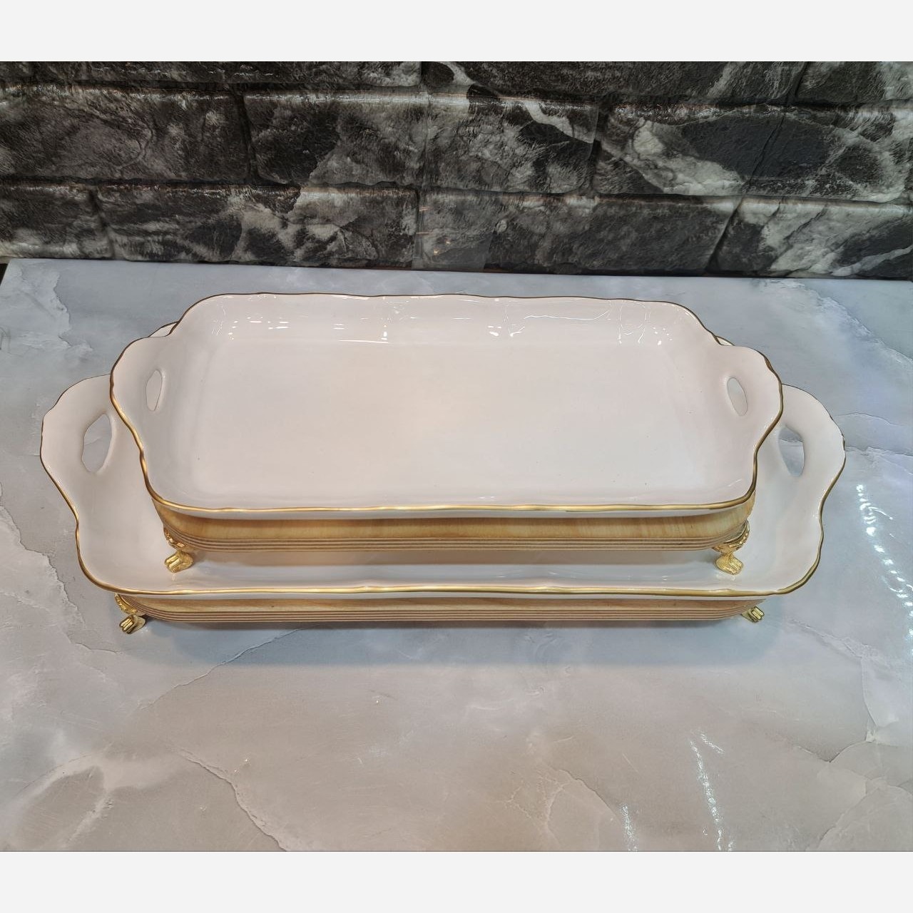 رولت خوری بزرگ خط طلا سرامیکی با استند چوبی