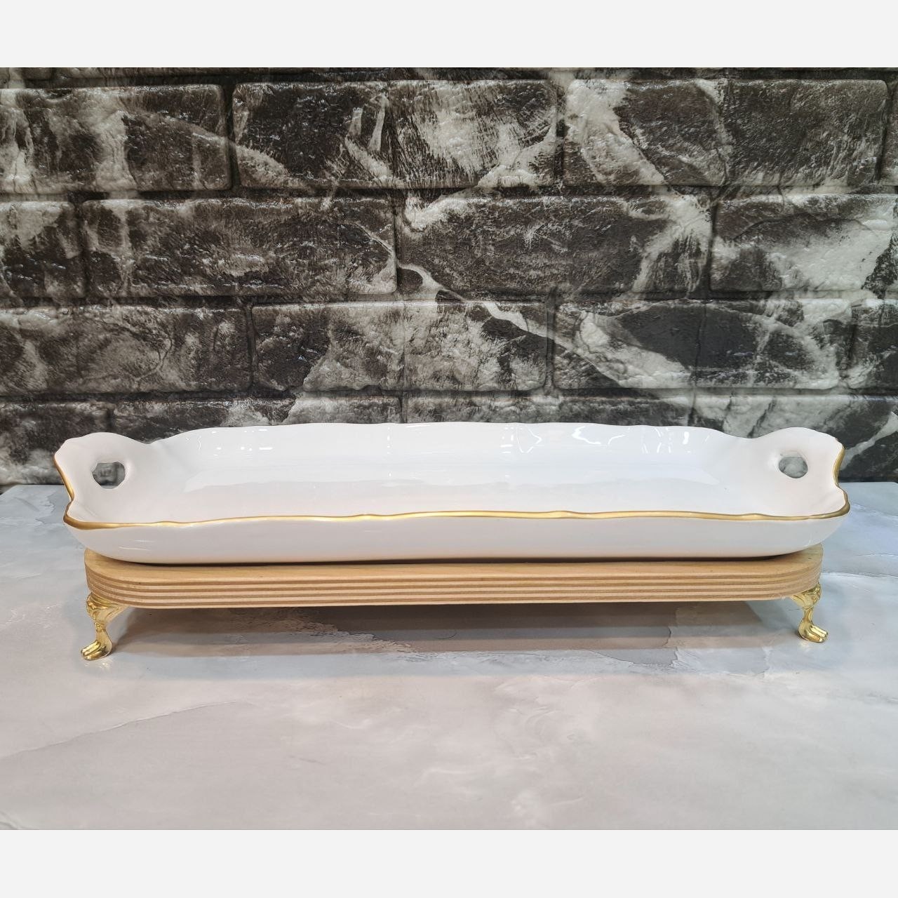 رولت خوری بزرگ خط طلا سرامیکی با استند چوبی مبلمونسرا مدل 276423