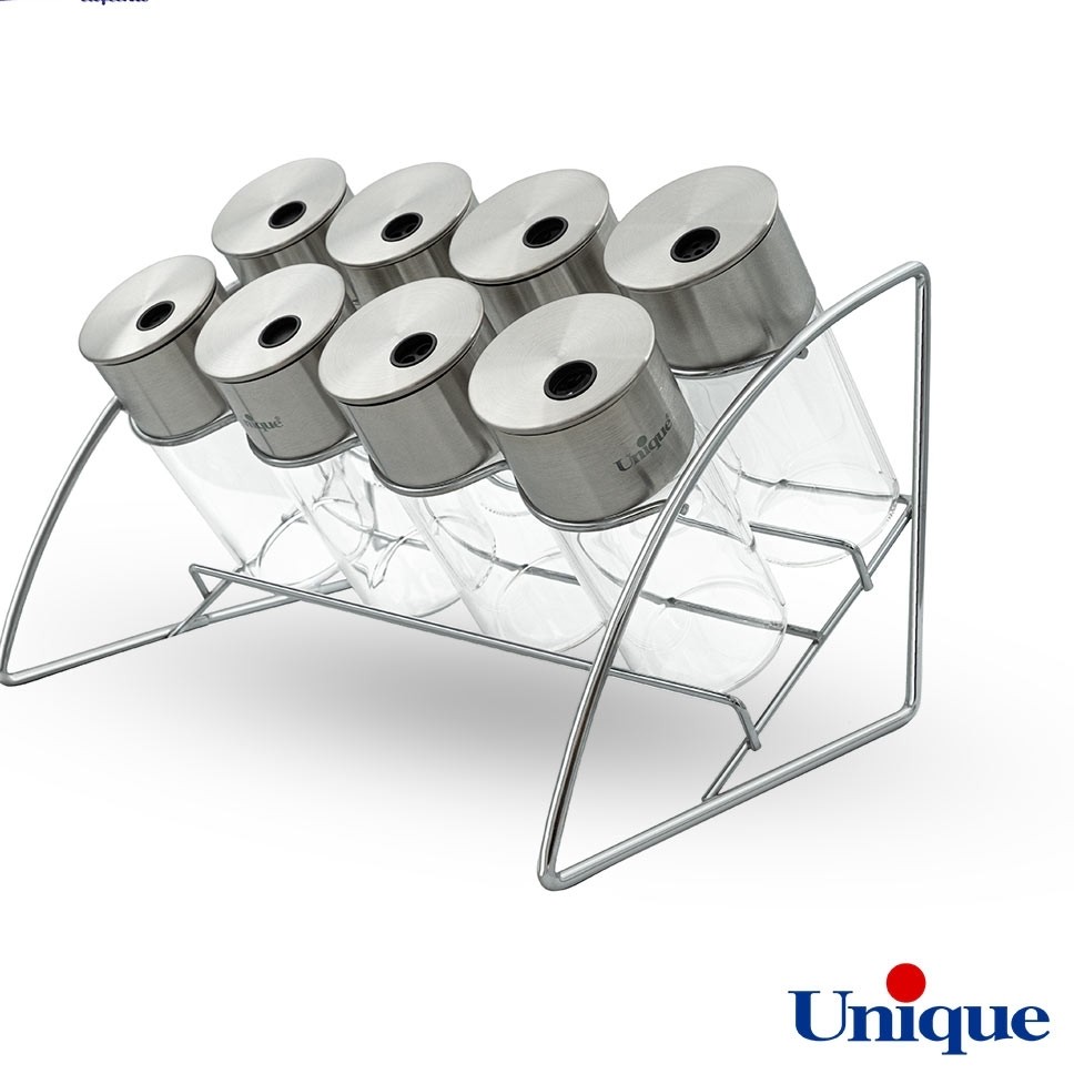 مارک : یونیک اصل ارتفاع جا ادویه ای: 12 سانتیمتر جنس جا ادویه: شیشه جنس استند: استیل