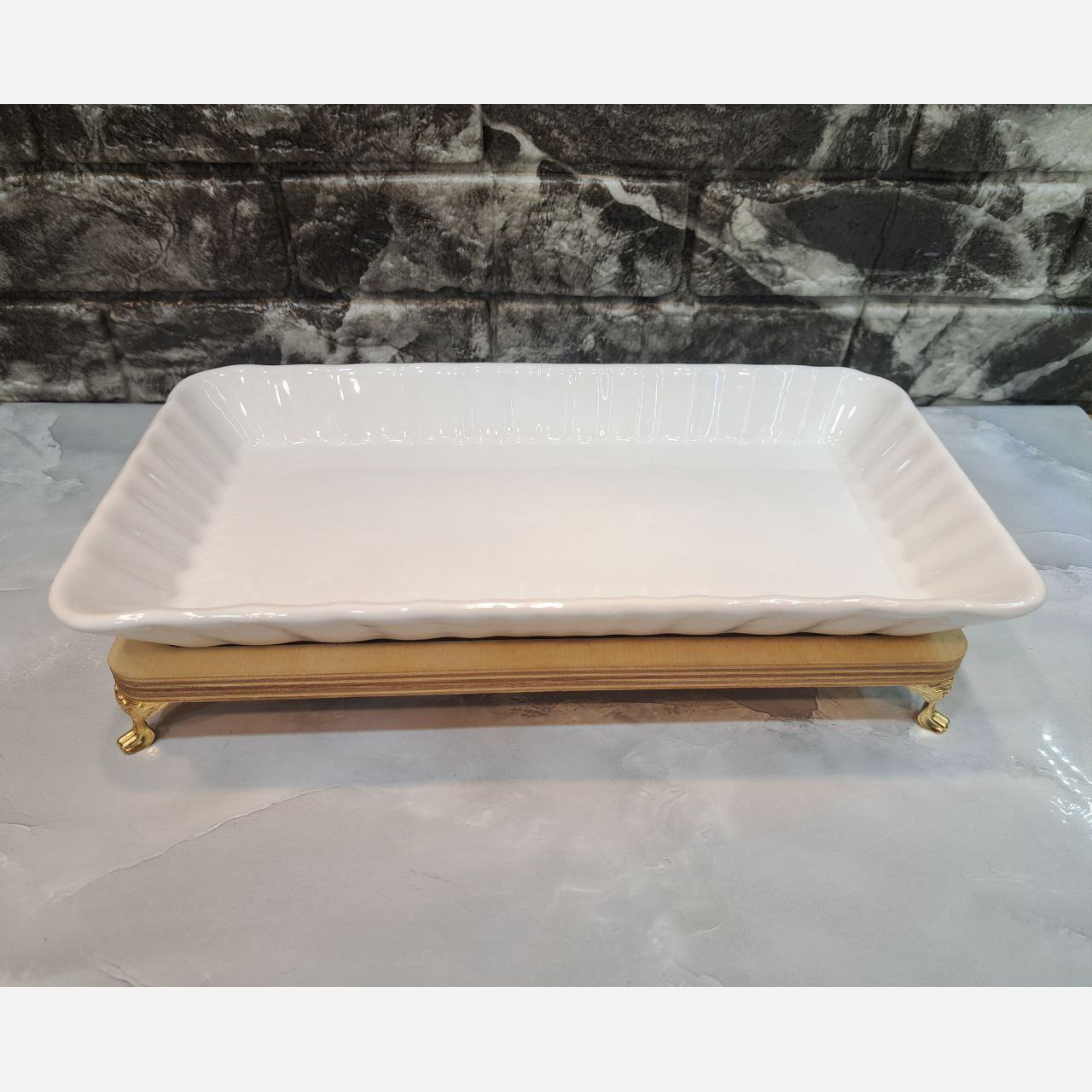 دیس کباب سفید سرامیکی با استند چوبی مبلمونسرا مدل 270758