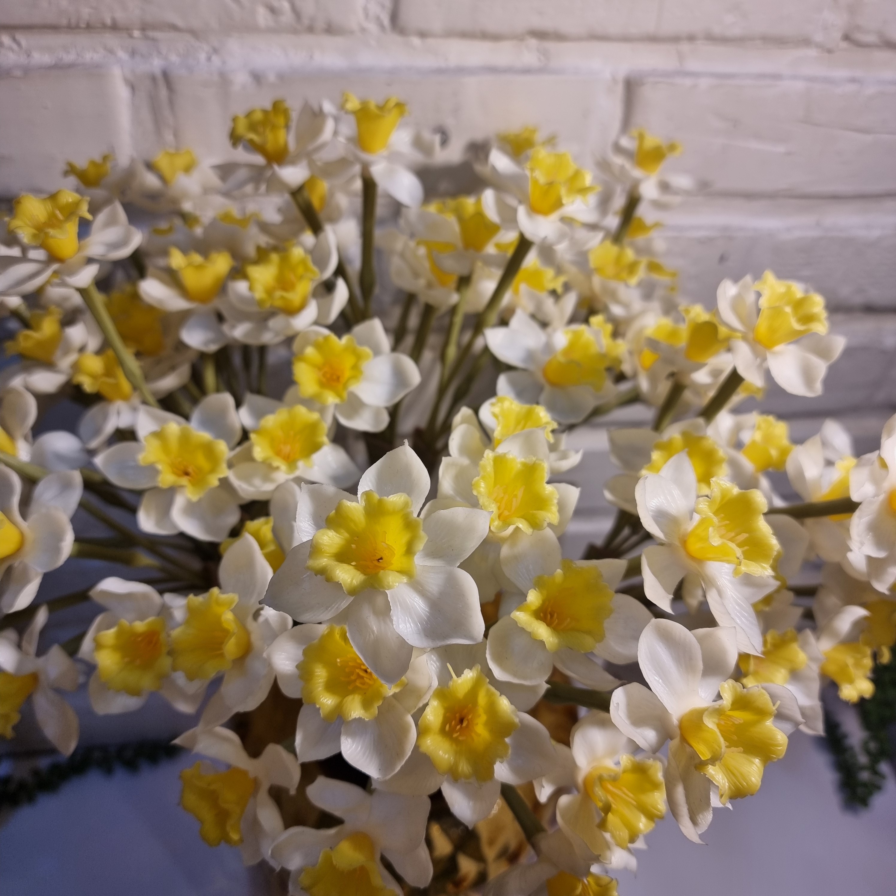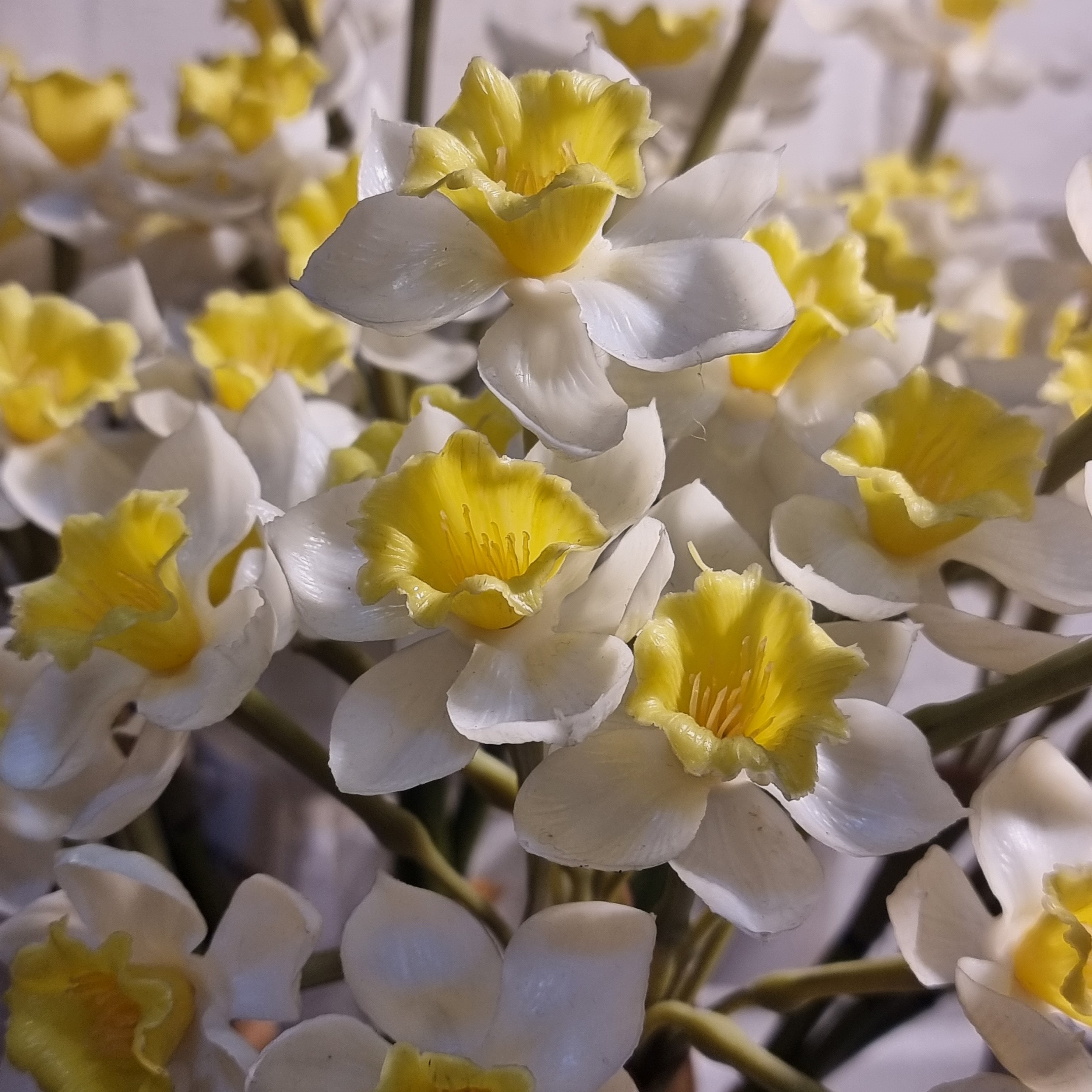 دسته گل نرگس وارداتی لمسی منظور از گل لمسی به گلی گفته میشود که وقتی به گلبرگهای گل و یا ساقه گل دست میزنید کیفیتی شبیه به کیفیت گل و ساقه گلهای طبیعی دارد و از لحاظ جنسی و ظاهری کاملا شبیه گلهای طبیعی میباشد