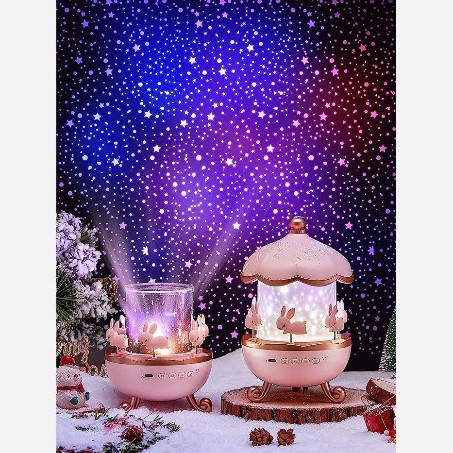 چراغ خواب پروژکتور "Bunny's Carousel Night Light Projector" توضیحات 👇 چراغ خواب چند منظوره با طراحی جذاب خرگوشی است. ویژگیها: پروژکتور نور: تصاویر را بر روی دیوار یا سقف اتاق پخش میکند و فضایی جادویی و آرامشبخش ایجاد میکند. طرحهای قابل تعویض: دارای 12 اسلاید قابل تعویض با طرحهای متنوع شامل تصاویر دوستداشتنی و خیالی است. همراه با سیم شارژ مناسب برای کودکان: طراحی دوستداشتنی با تم خرگوشی، مناسب برای اتاق کودک و ایجاد فضایی شاد و آرامشبخش است. این مدل بلوتوث دارد در بسته بندی این محصول 12 اسلاید وجود دارد،که میتونید به سلیقه ی خودتون تعویض کنید.