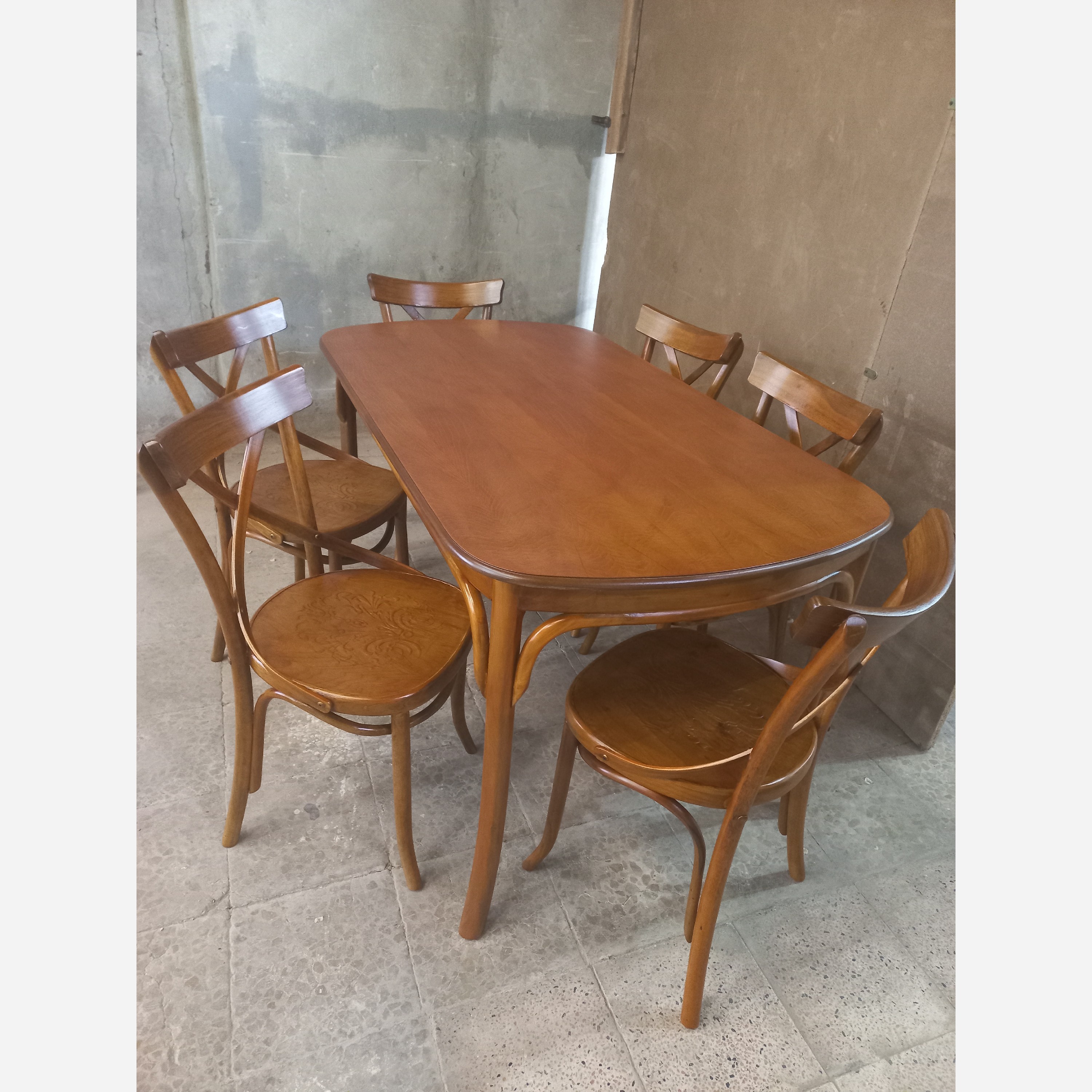 ست میزو صندلی لهستانی چوب گردو 6 نفره مبلمونسرا مدل 215944