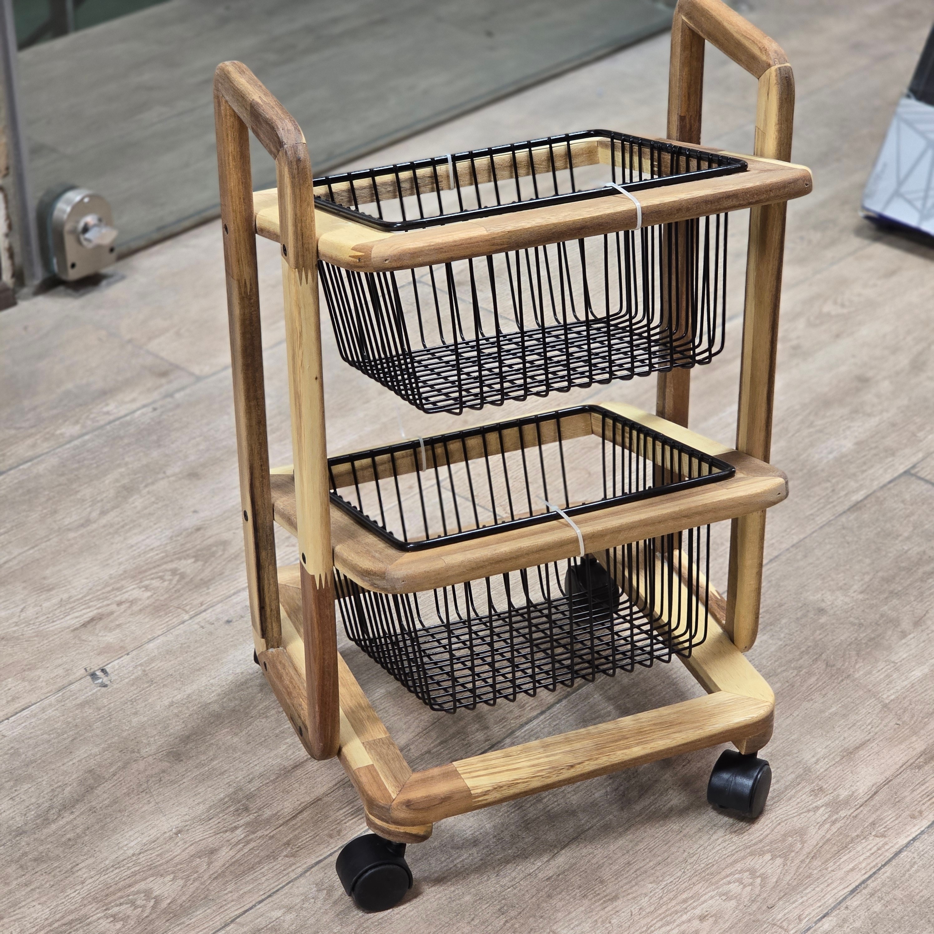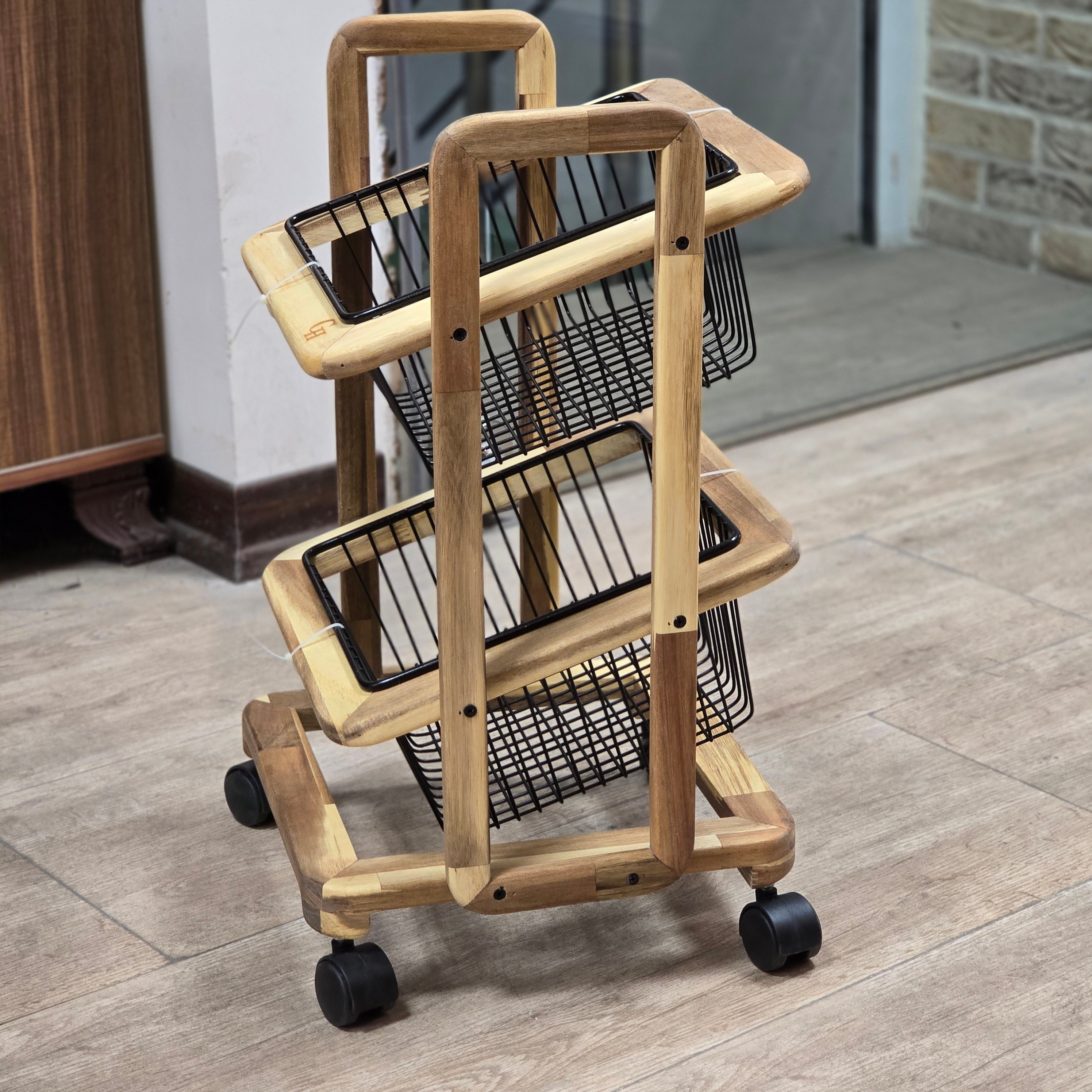 جای سیب زمینی و پیاز 2 طبقه شیب دار اکاسیا چرخ دار کد 110003 مبلمونسرا مدل 294964