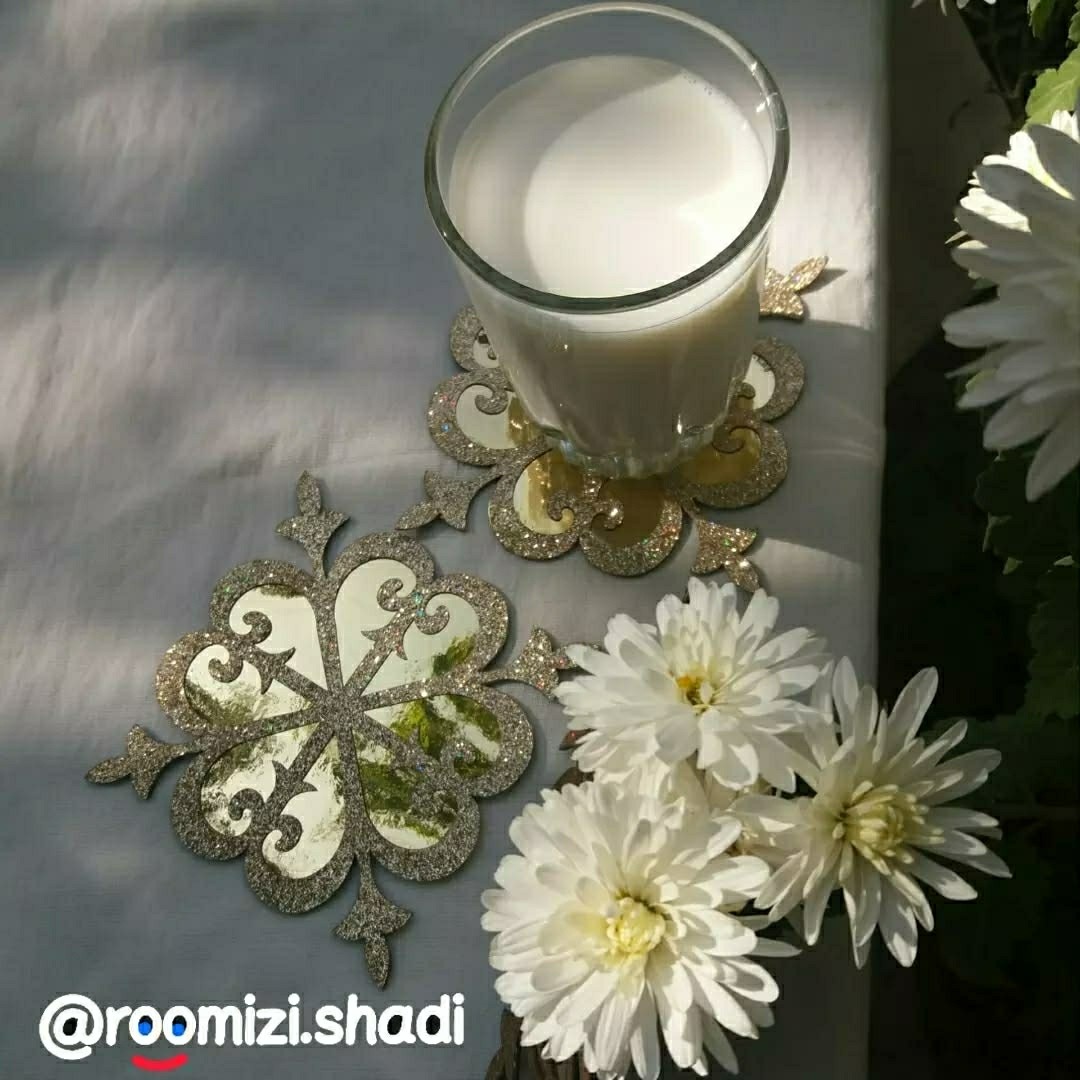 6 عدد زیرلیوانی چرم مصنوعی اکلیلی وبراق قابل شستشو و اکلیل ثابت