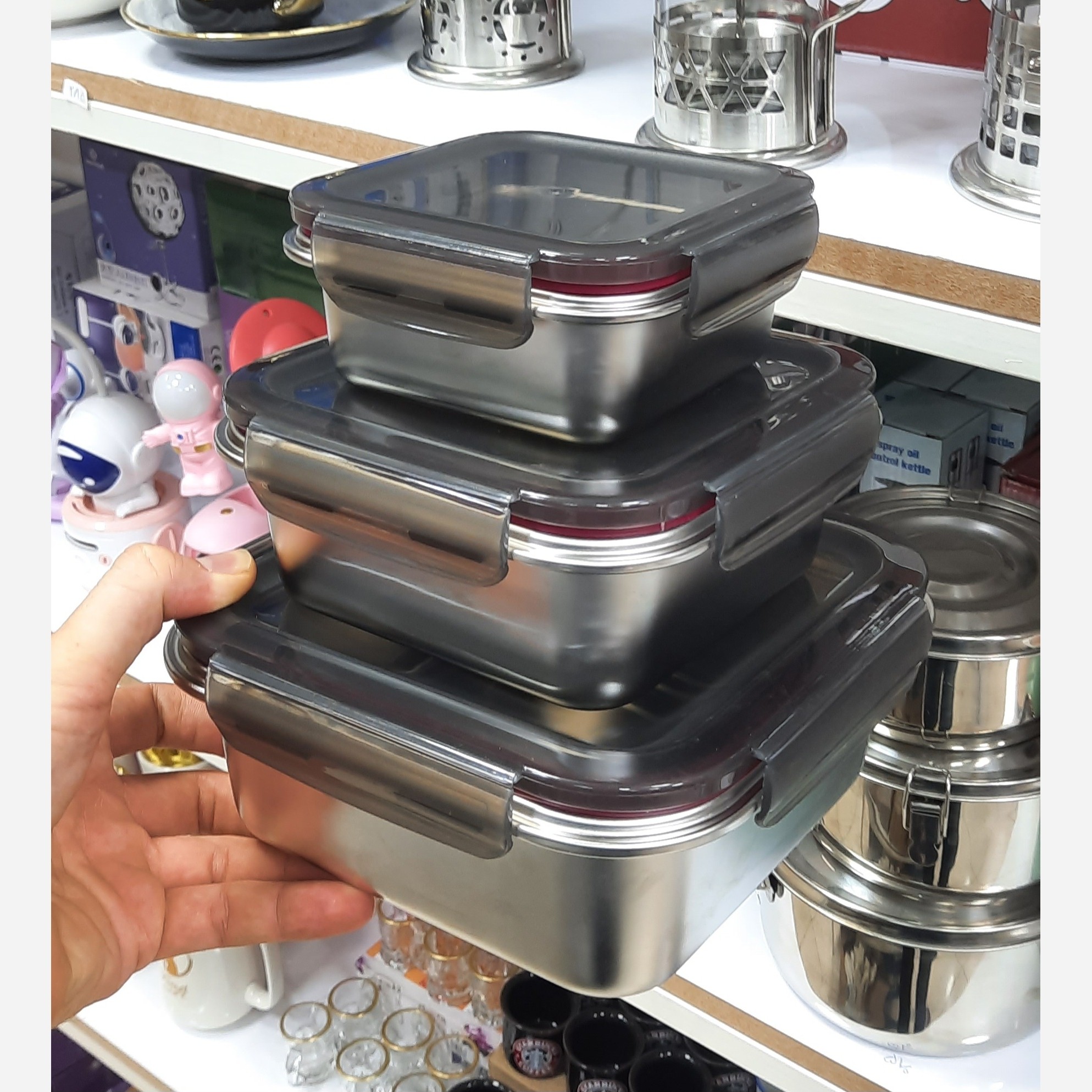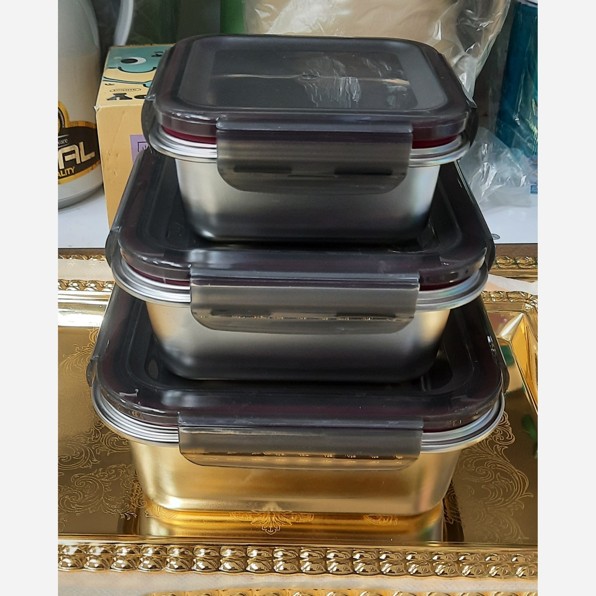 ظرف غذا جا میوه ای استیل سه تیکه استیل نگیر قفل دار بسیار با کیفیت و وارداتی