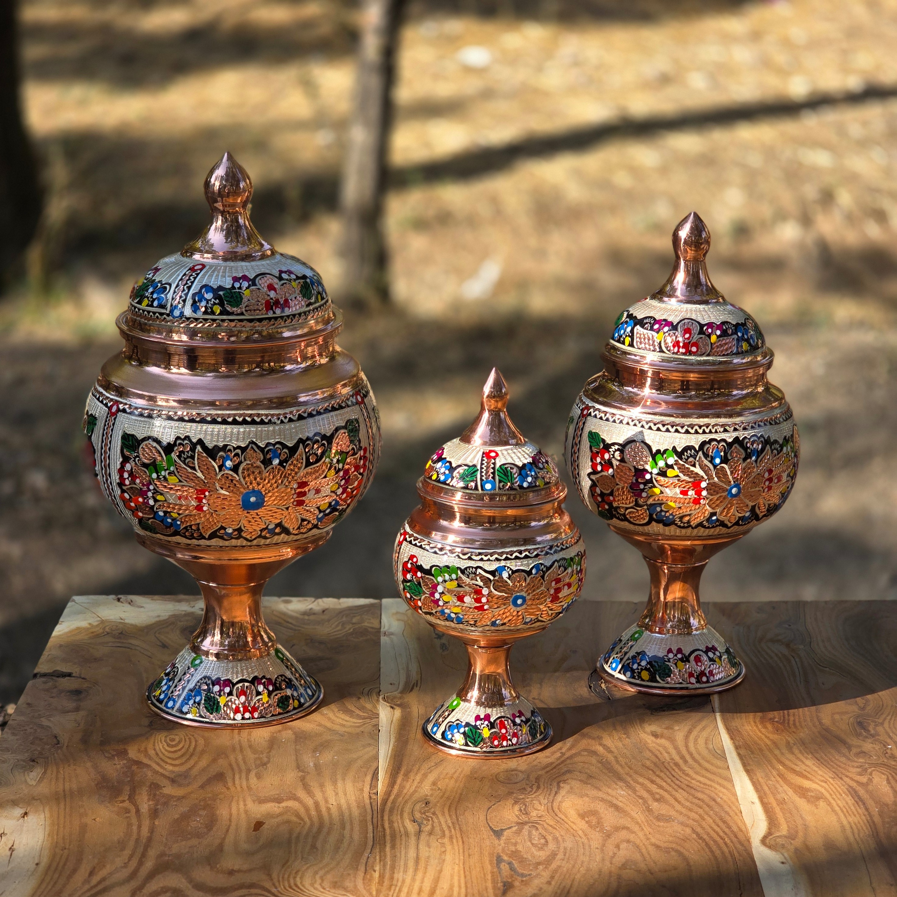 آجیل خوری مسی پایه الماس تراش و نقره کوب و مینا کاری به صورت رنگ ثابت مبلمونسرا مدل 265517