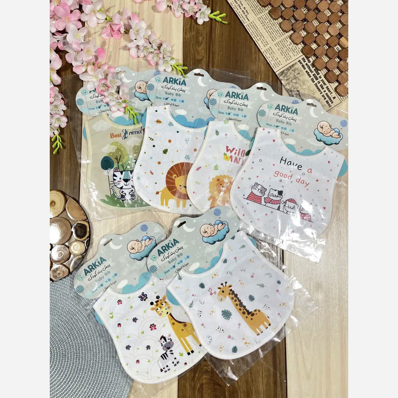 وسایل سیسمونی پیشبند دکمه ای طرح رندوم ضدآب سایز S :پهنا: 18، قد: 22 سایز M : پهنا: 21، قد: 25