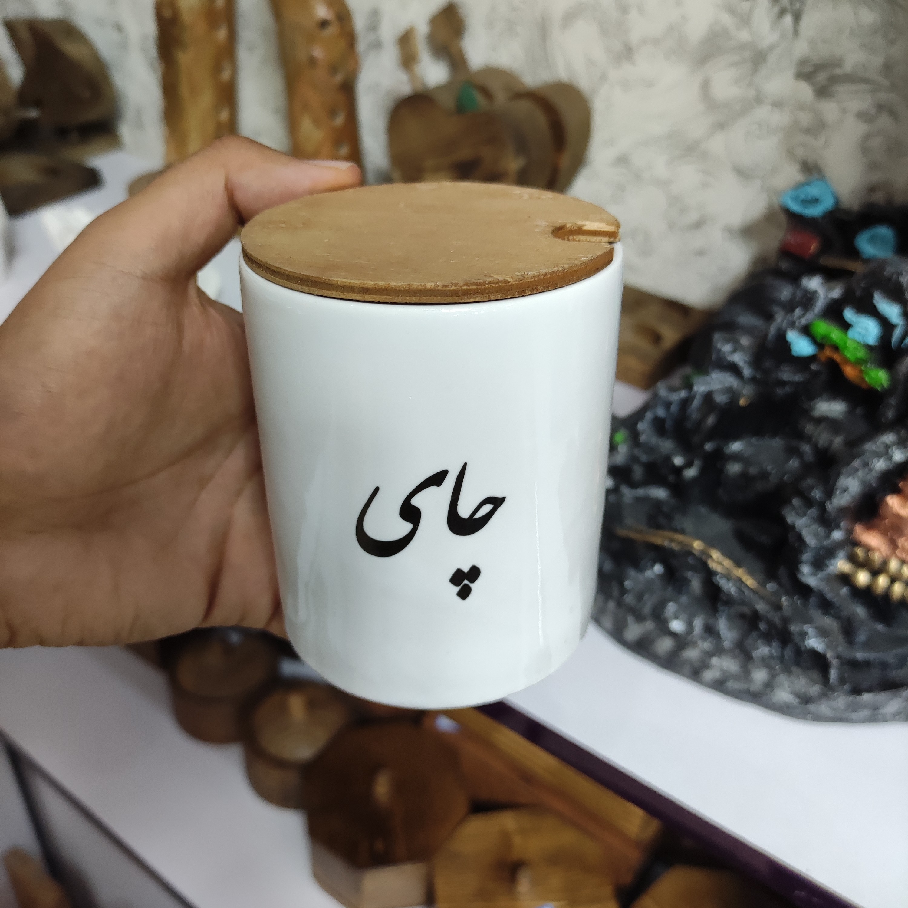 چای . شکر . قهوه. نمک . اسپند جنس کار چینی درجه یک درب چوبی قبل از سفارش موجودی مدل مورد نظرتون رو استعلام بگیرید ارتفاع 10 سانت قطر 8 سانت