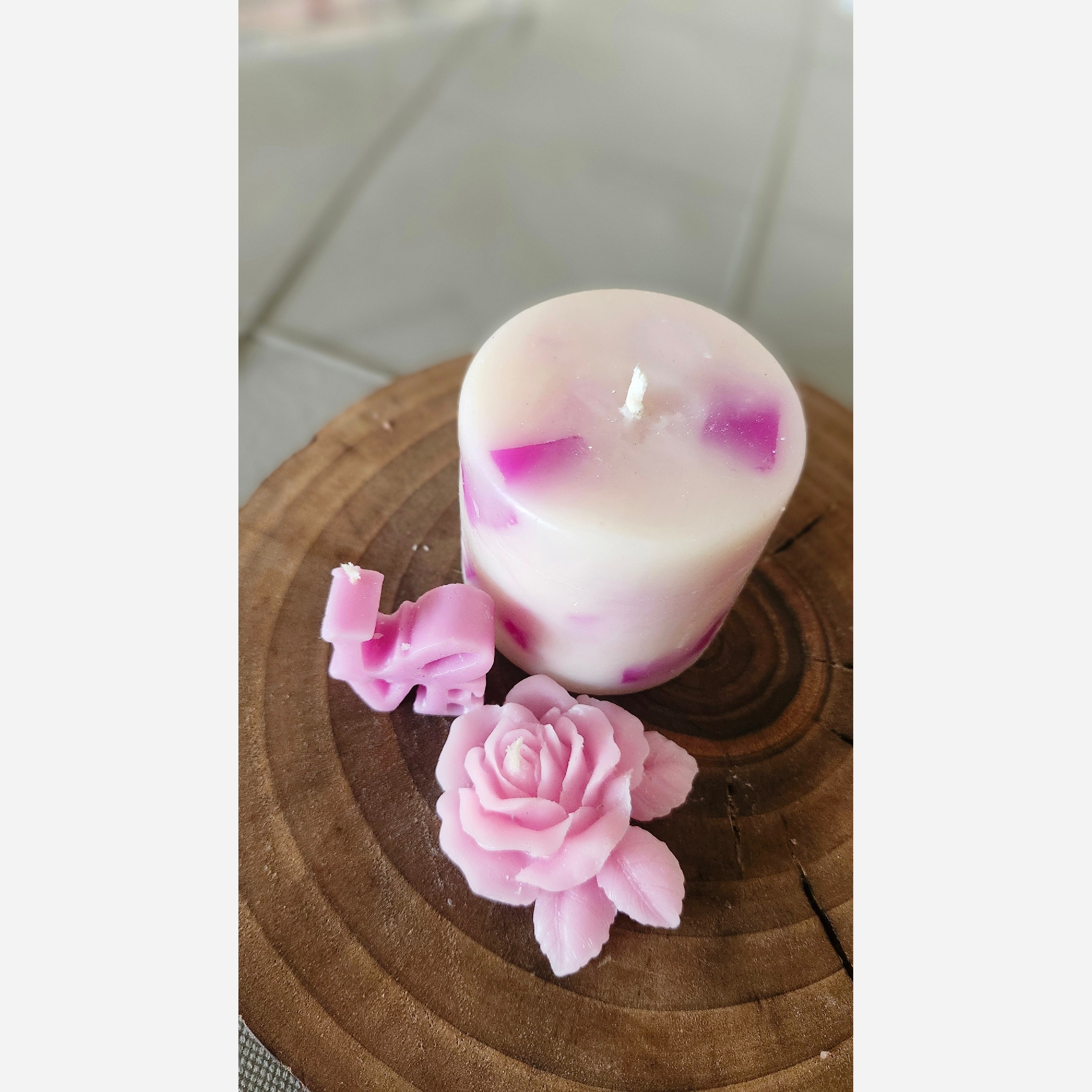 شمع استوانه ی سفید با تکه های یاسی شمع گل رز یاسی کوچک شمع لاو کوچک معطر استفاده از مواد مرغوب تمام آیتم ها قابل روشن شدن هستن تک رنگ و آماده سفارش میباشد ✨نکته : شمع استوانه هر بار که روشن شد باید لایه ی کامل از آن ذوب شود تا دچار حفره و گودی نگردد و همیشه شمعی سالم و زیبا داشته باشید هر بار شمع را روشن کردید حداقل 2 ساعت روشن بماند زود زود روشن خاموش کردن شمع باعث خراب شدن شمع میگردد