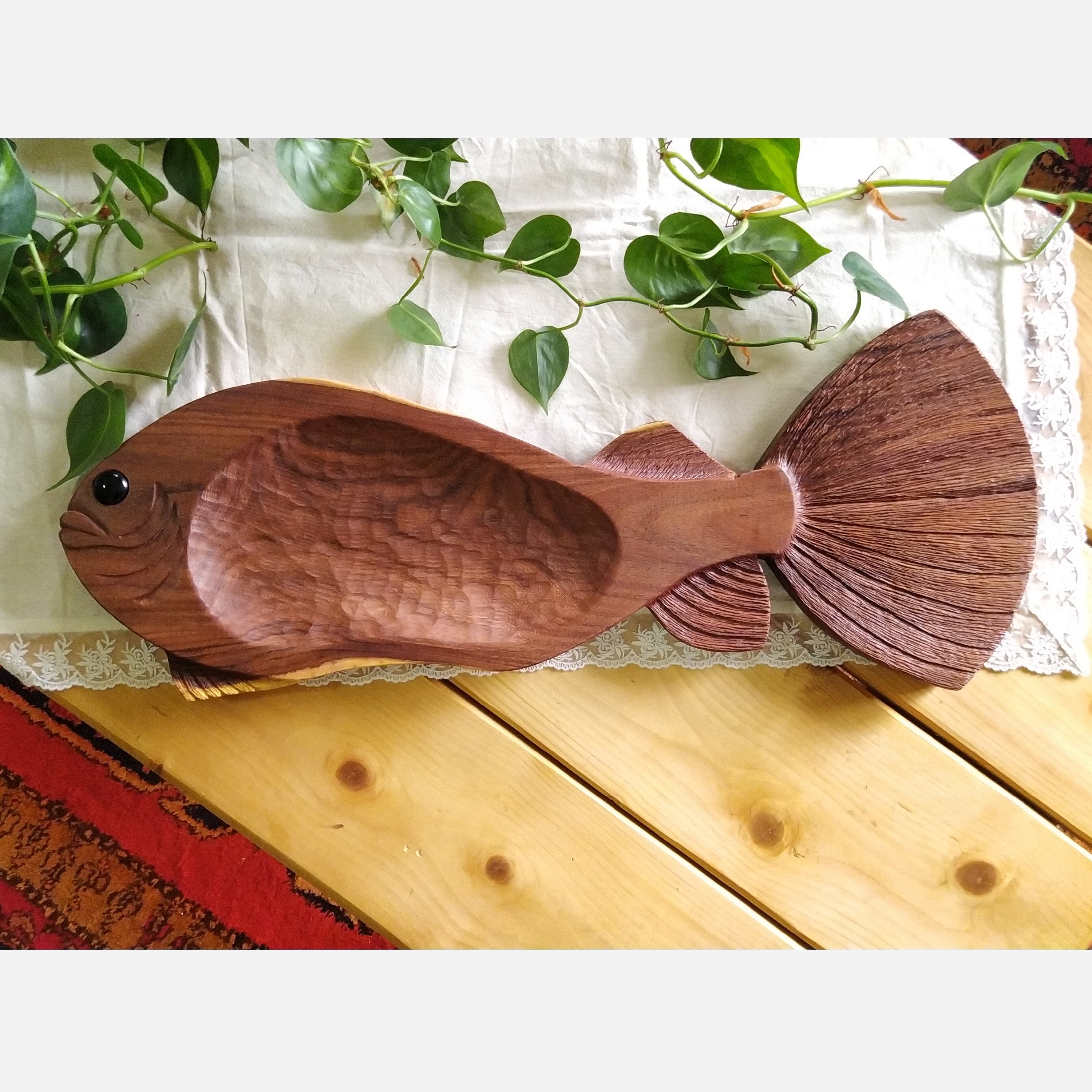 ظرف ماهی چوبی منبت شده دستساز مبلمونسرا مدل 277248
