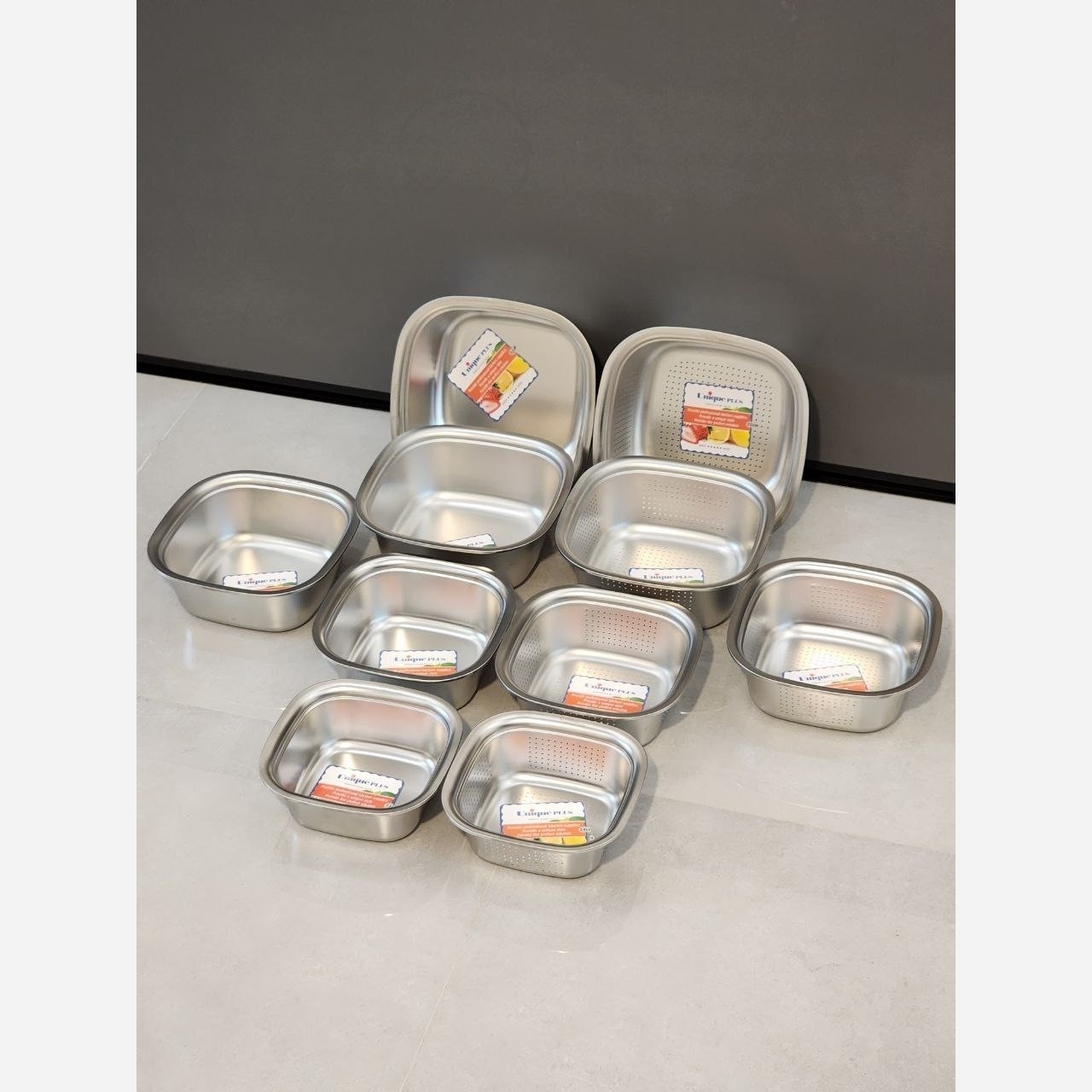 لگن و آبکش استیل 10 پارچه یونیک مبلمونسرا مدل 294273