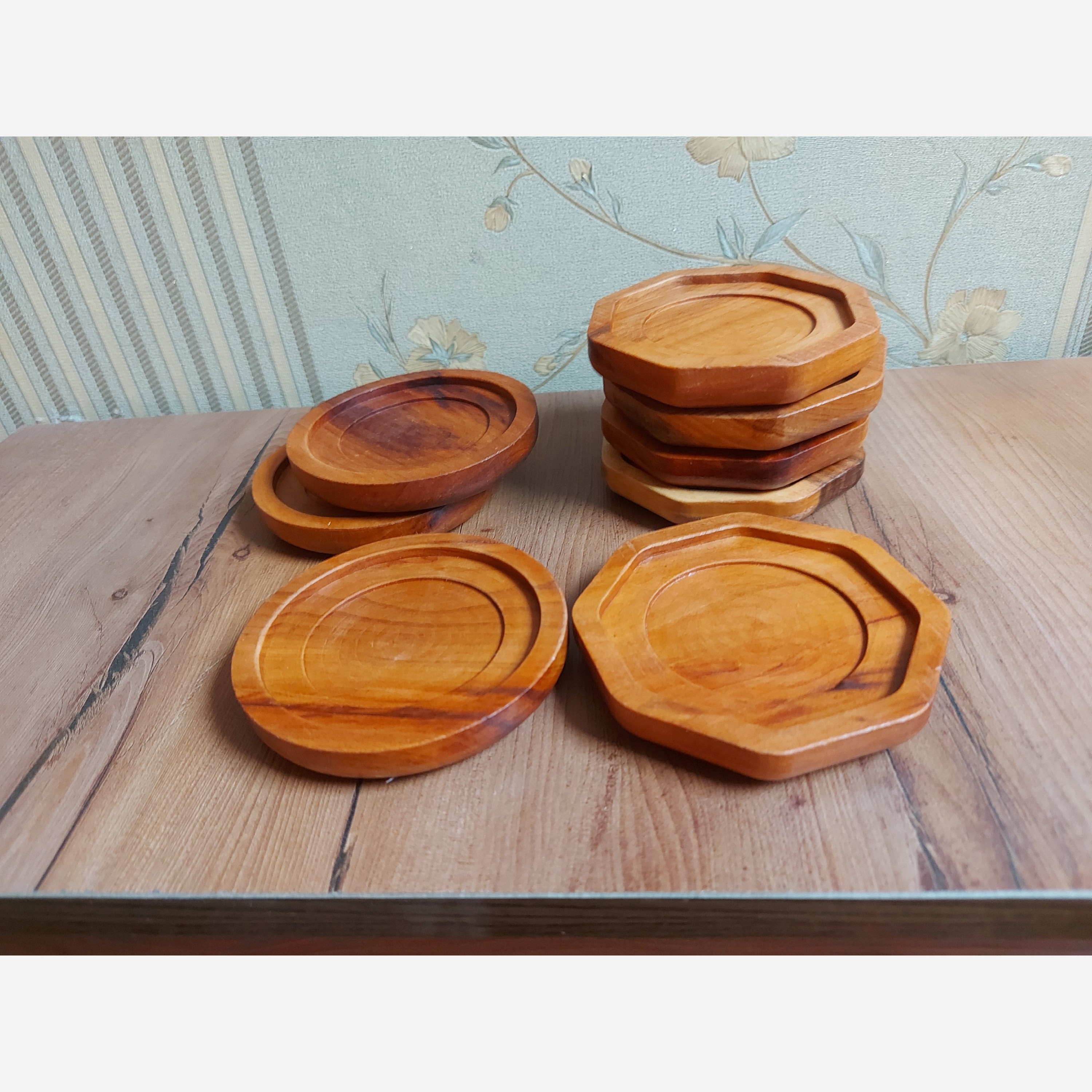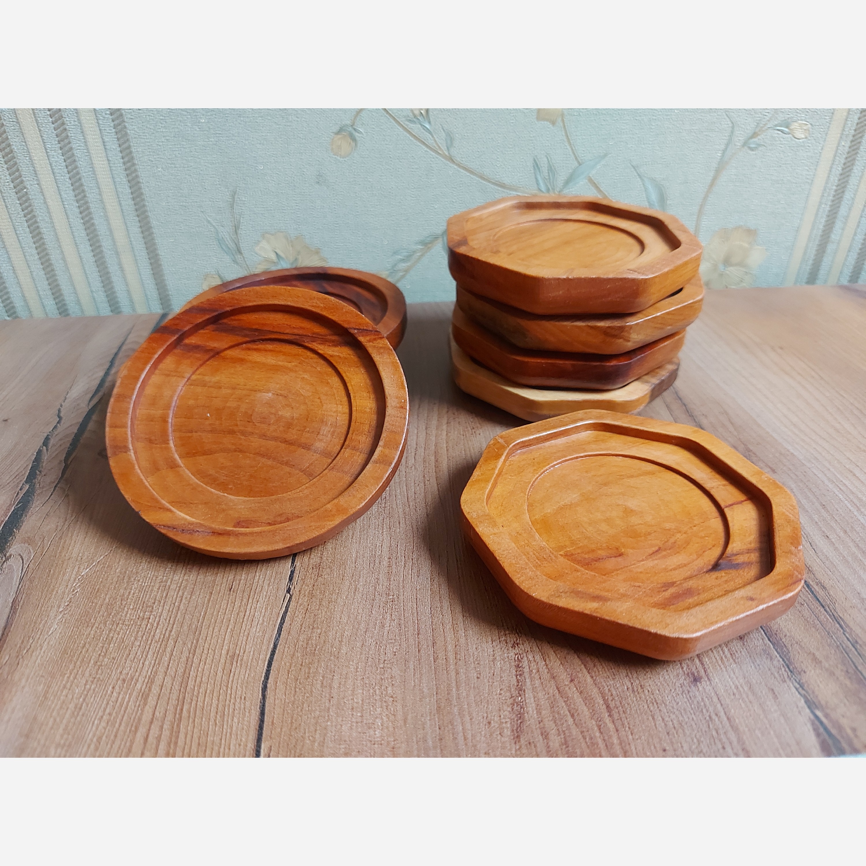 زیر لیوانی چوبی، چوب گردو، علاوه بر زیبایی دیگه نگران لکه چایی و اب روی میز نباش 😅طرح دایره و هشت ضلعی ساده و مدرن