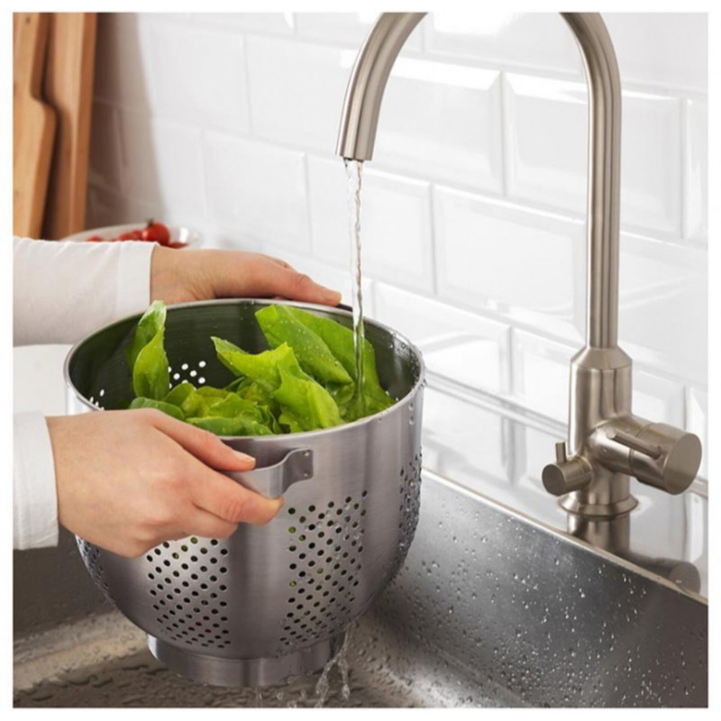قطر این آبکش 22 سانتی متر است جنس آبکش از استیل استنلس است قابل شستشو در ماشین ظرف شوئی می باشد این کار پایه دار است پیش از نخستین استفاده بشویید