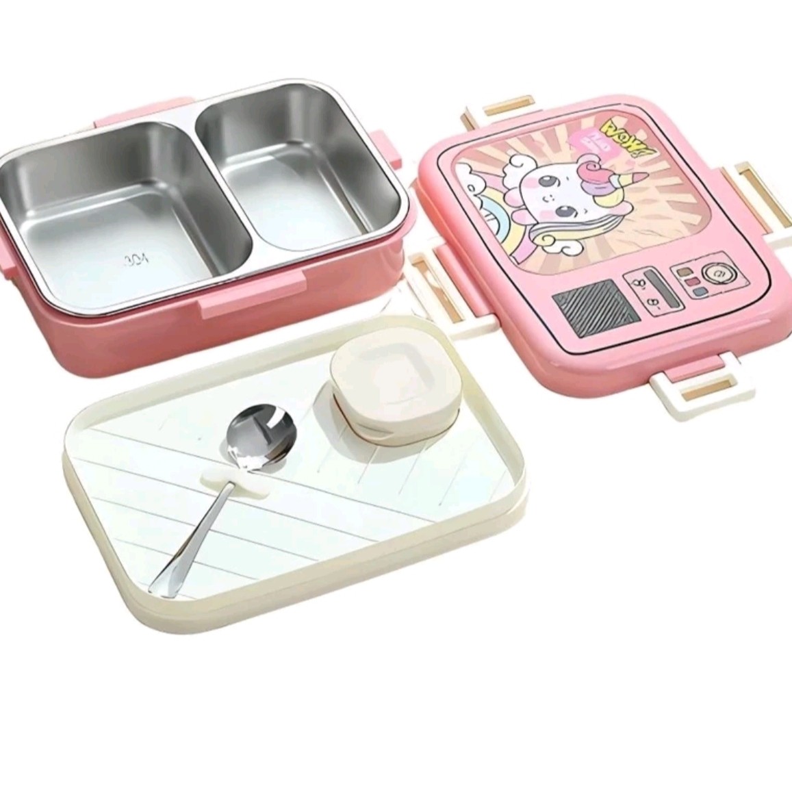 ظرف غذای دو محفظه ای دوکاره شیک و بادوام دارای دو محفظه برای انواع غذاها و سلیقه ها جنس استیل با کیفیت .مقاوم و بادوام مناسب برای هر سن و هر سبکی قابل استفاده در همه جا خونه .محل کار .مسافرت .مدرسه .مهد کودک