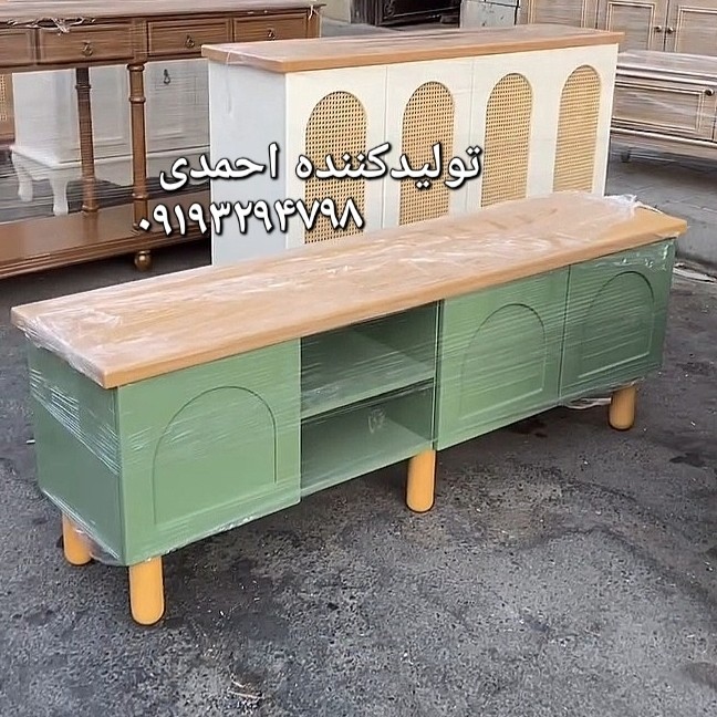 میزکنسول ست میزتلویزیون کلاسیک سبز پاستیلی مبلمونسرا مدل 224277