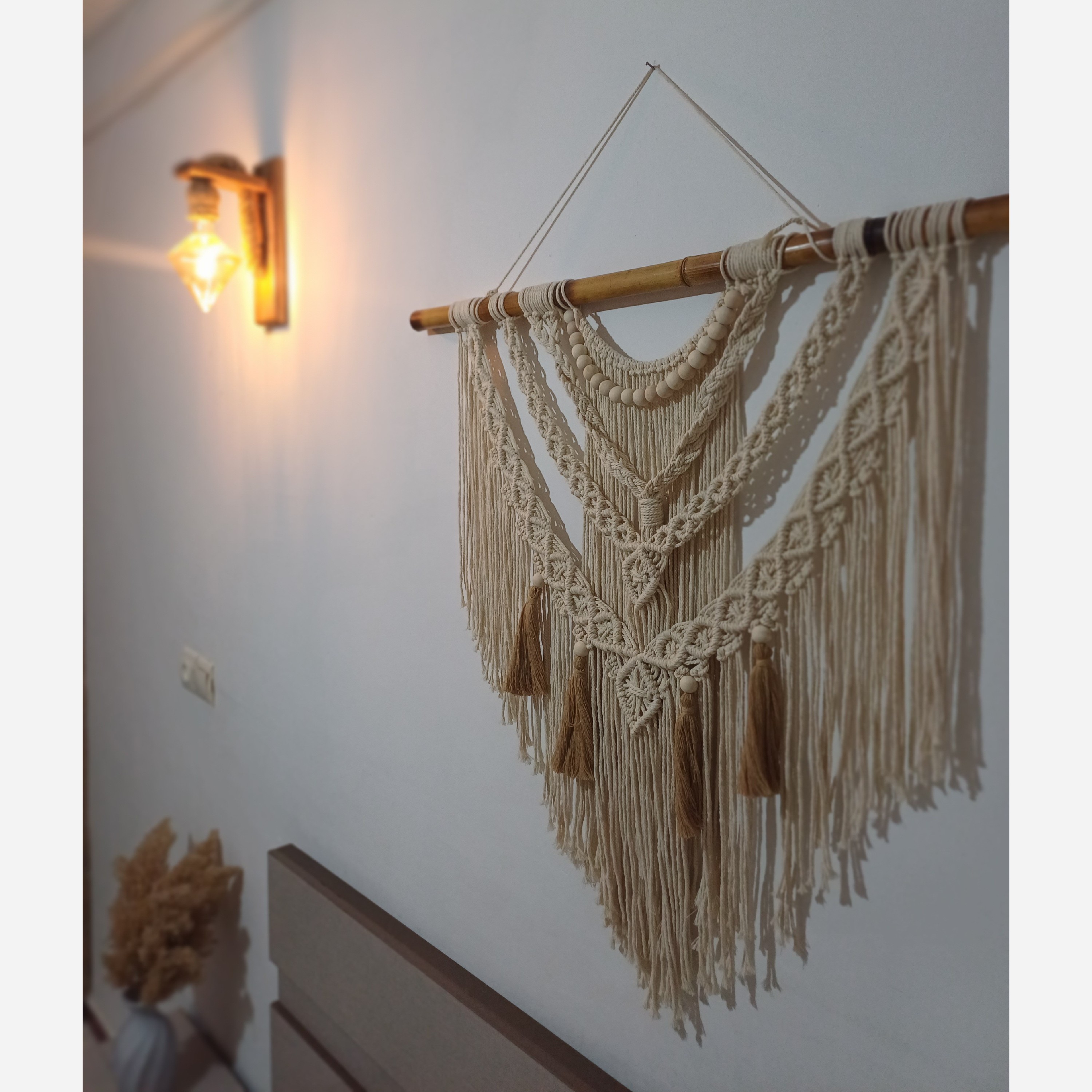 دیوارکوب مکرومه و چوب با مهره چوبی ابعاد 90 در 80 مبلمونسرا مدل 258887